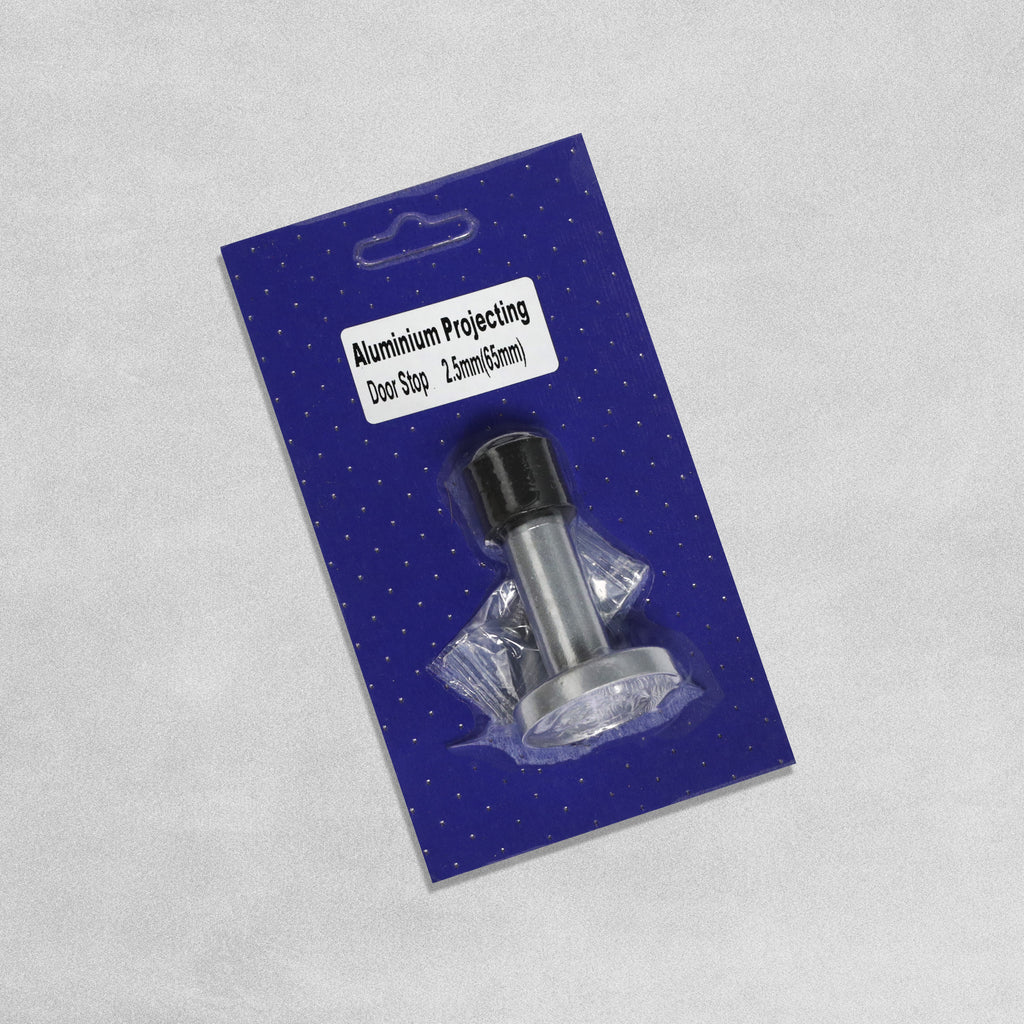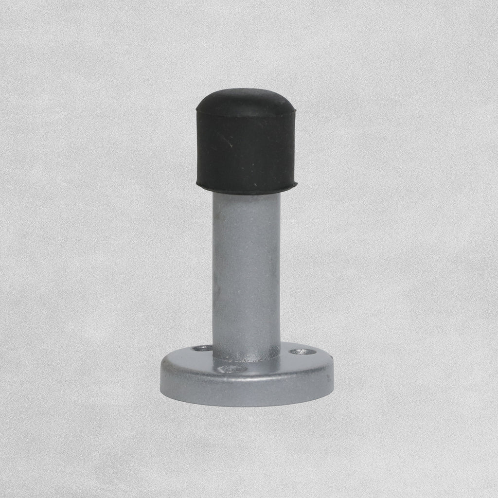 Tubular wall mounted door stop fitted to the wall to prevent a door from opening against a wall.