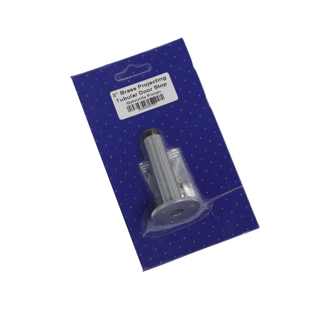 Tubular wall mounted door stop fitted to the wall to prevent a door from opening against a wall.