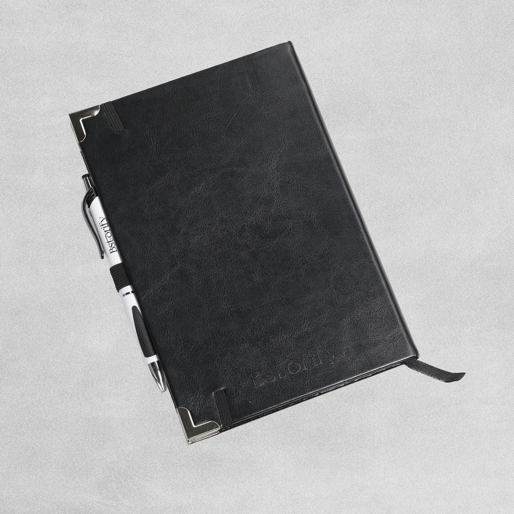 - A5 HARDCOVER JOURNAL: This compact lined note book is designed to be the perfect companion for your writing needs. Our A5 notepad comes up with a black ink pen features a durable and water-resistant leather cover, metal corner protectors, 160 lined pages, an inner expandable pocket, a ribbon bookmark, and an elastic closure band
