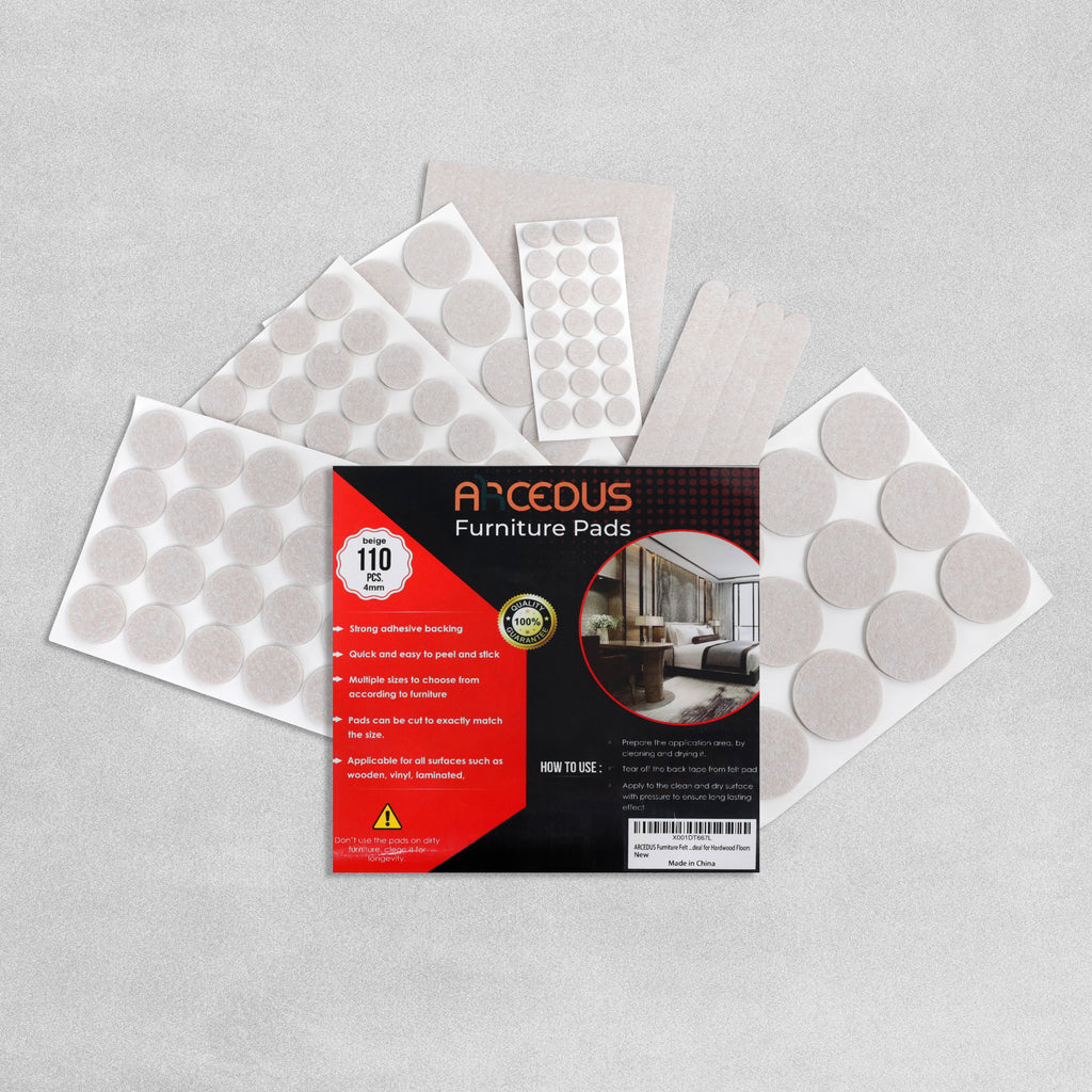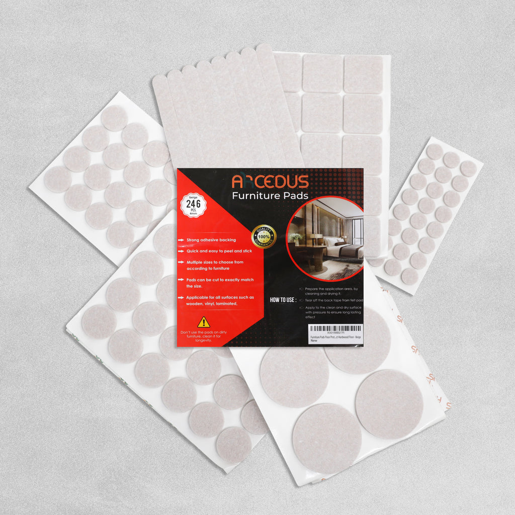 The Arcedus Furniture Pads are high-quality chair leg floor protectors that are 4mm thick, with a sticky self-adhesive backing to ensure the chair pads also stay in place. Protect the value, beauty and newness of your floors with these furniture pads from Arcedus.