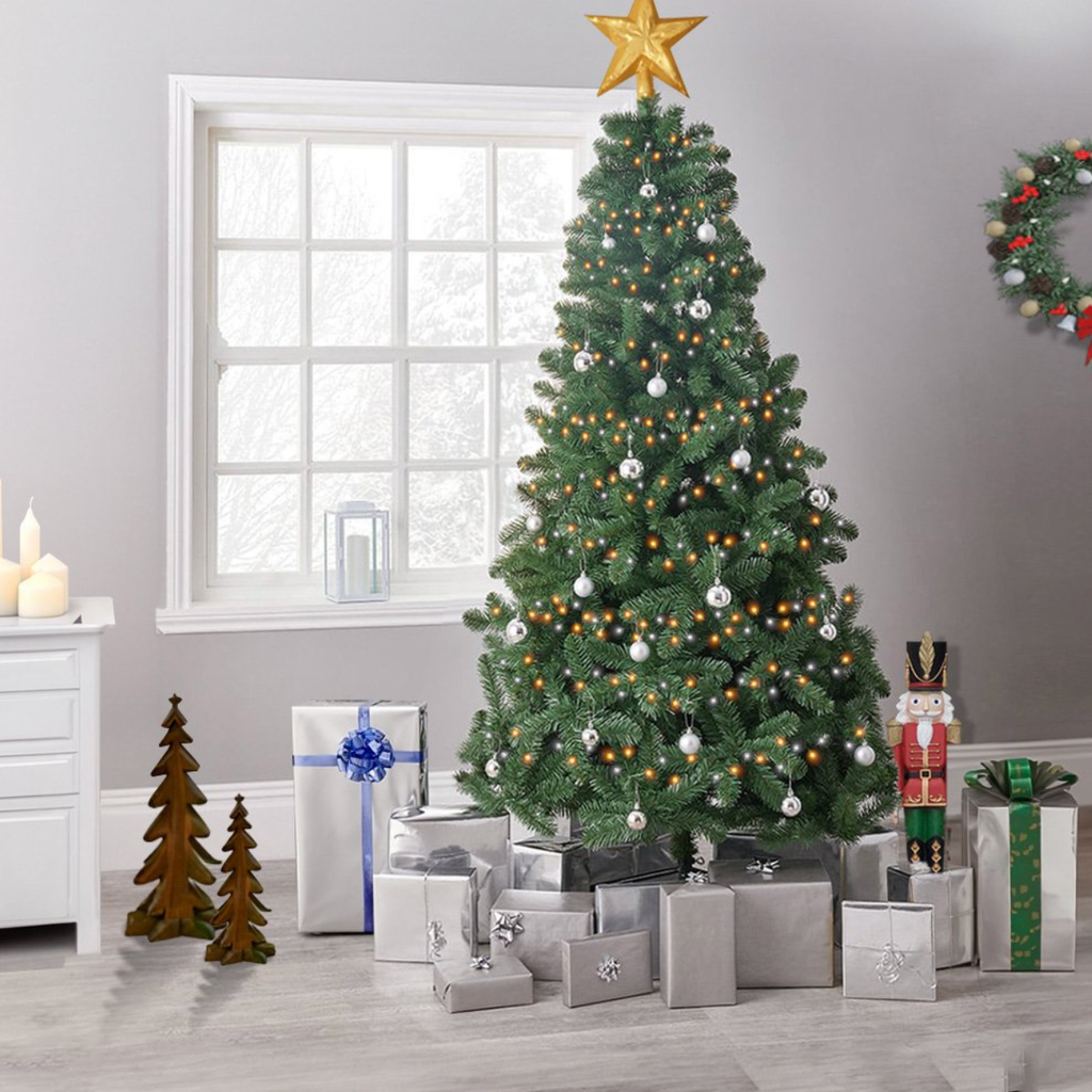 This Scandinavian Fir tree exhibits the spirit of Christmas just as good as a real one. Designed in natural green colour, you can easily assemble this tree with the hinged branches and keep it secure with the provided firm safe base. This artificial Christmas tree is sure to add an extra touch of shimmer to your festive decorations. Approximate dimensions: H7 x 4ft (213 x 122cm). Directions for use: Before use, please read the leaflet contained in the packaging which details all assembly instructions. Please follow these instructions carefully to ensure safe and satisfactory use of this product. Assembly by an adult only.