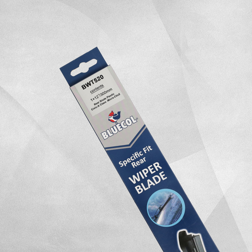 The Bluecol BWT520 rear wiper blade is a specific-fit, 12-inch (300mm) designed as a direct replacement for the plastic moulded blades found on the rear screen of many modern vehicles.