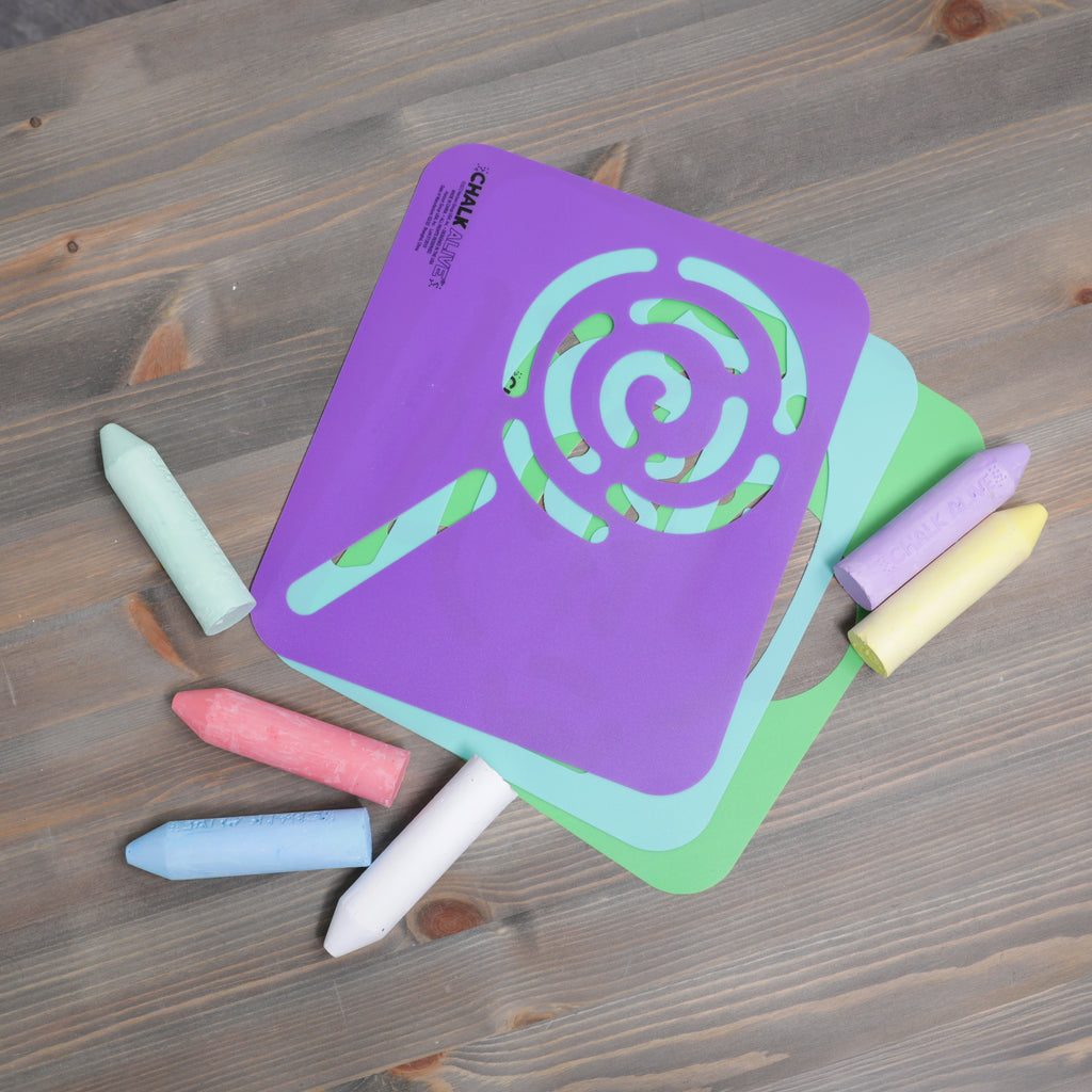 First, head outside with the 6 colourful sidewalk chalks and 3 character stencils included and prepare to create a portal into a whole new world of lively, creative fun! Use the chalks to colour in the Gummy Bear, Robot and Alien stencils.