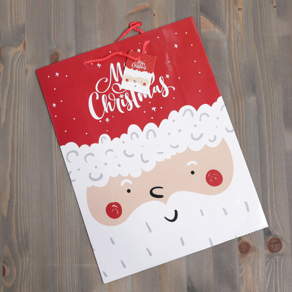 These charming bags feature a simple yet adorable cartoon design of Father Christmas' face.