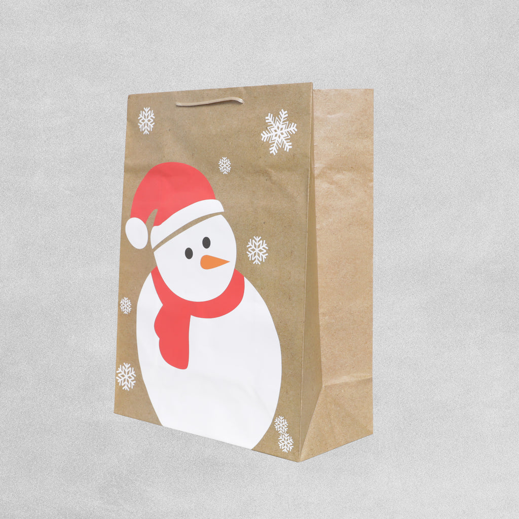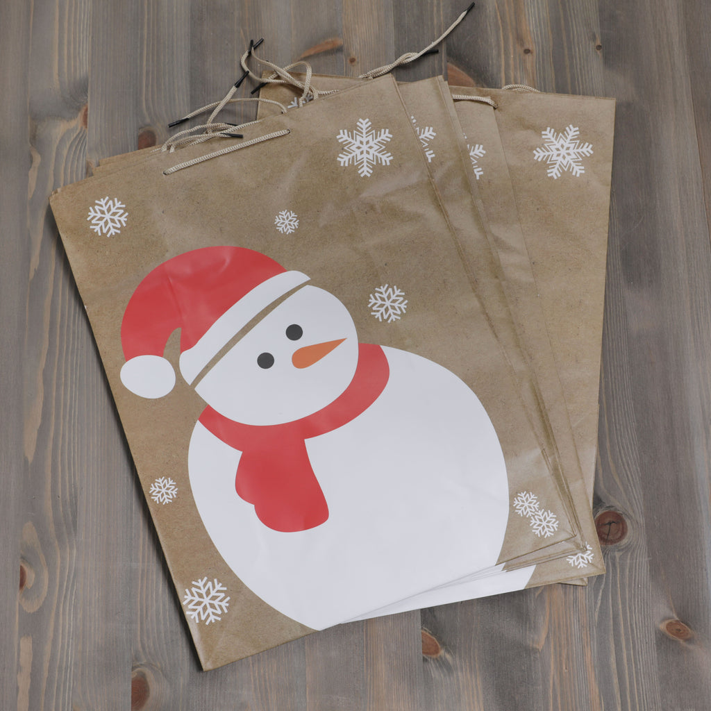 These charming bags feature a simple yet adorable design of a snowman in a winter scene while wearing a red scarf.