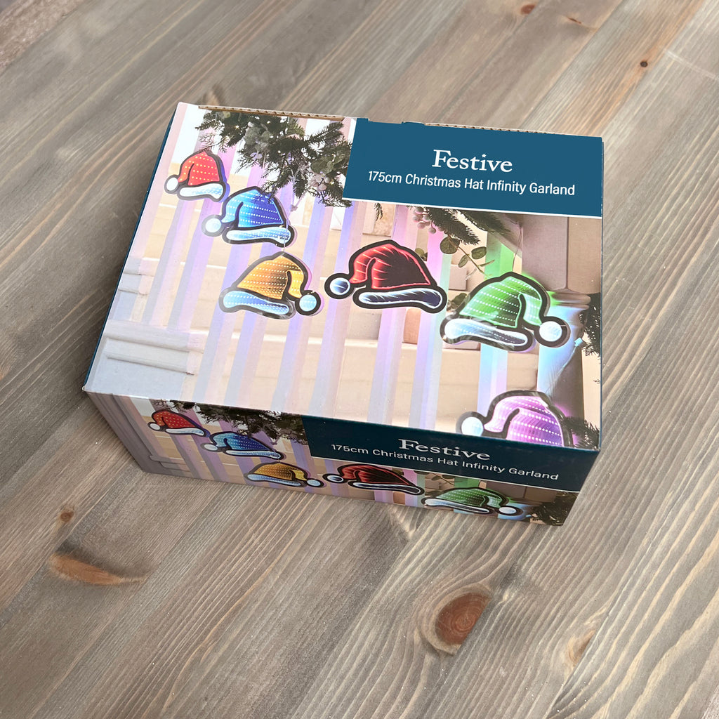 Bright white LEDs mean this garland sparkles in the night while being a stand-out statement in the day, with the festive fun that is the iconic Christmas hat further making this garland the one to buy this Christmas!