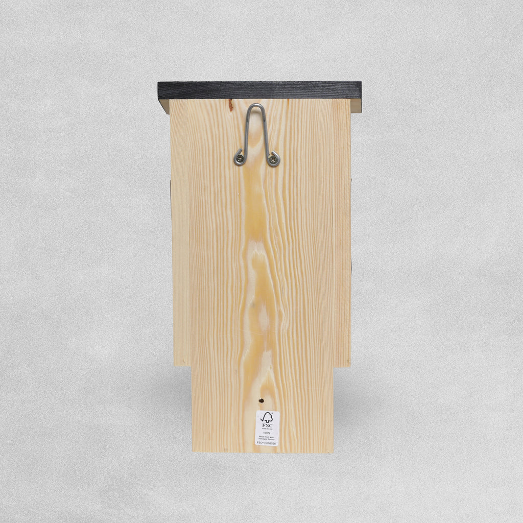 The CJ Wildlife Glamis Bat Roofing Box has been designed with an easy entry point and a grooved ladder entrance, to make this an attractive roosting site for bats. With a black roof and a bat shaped motif, this box will make a great feature to any outdoor area.
