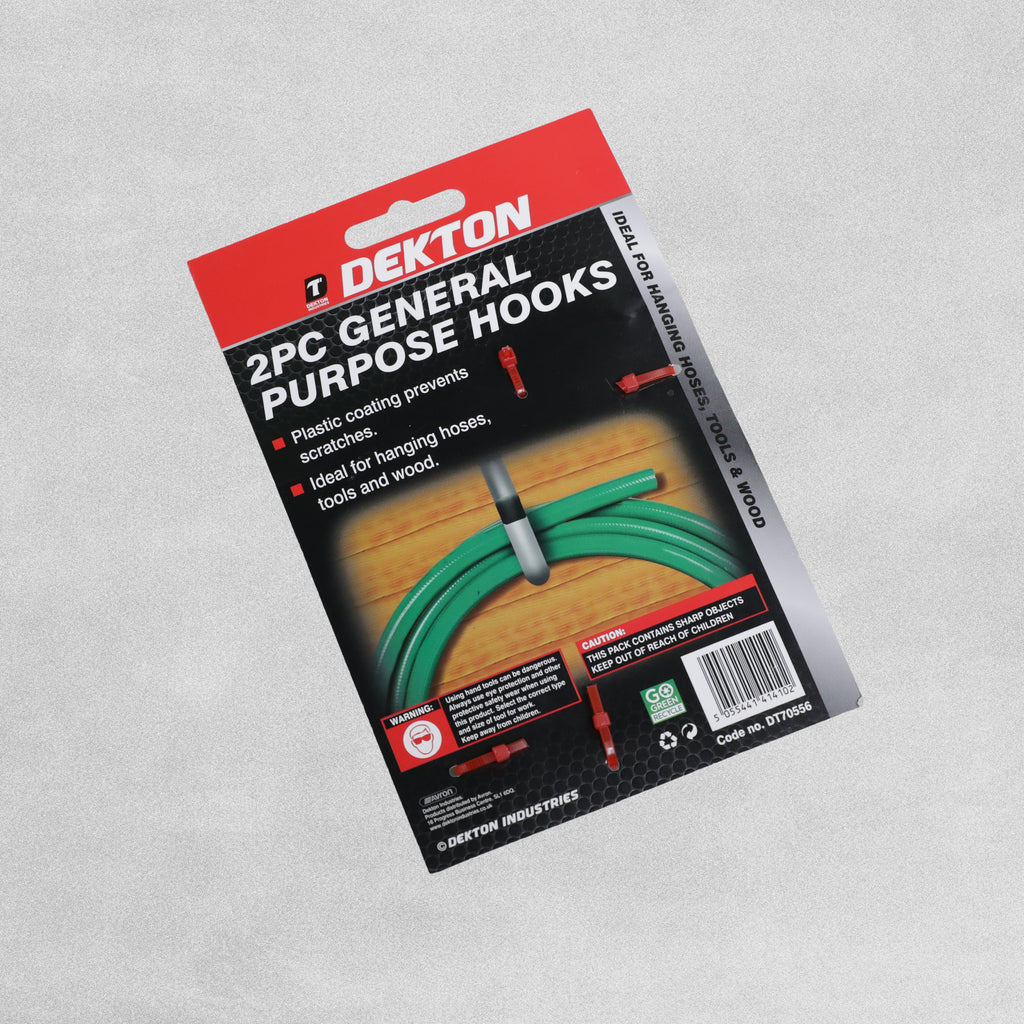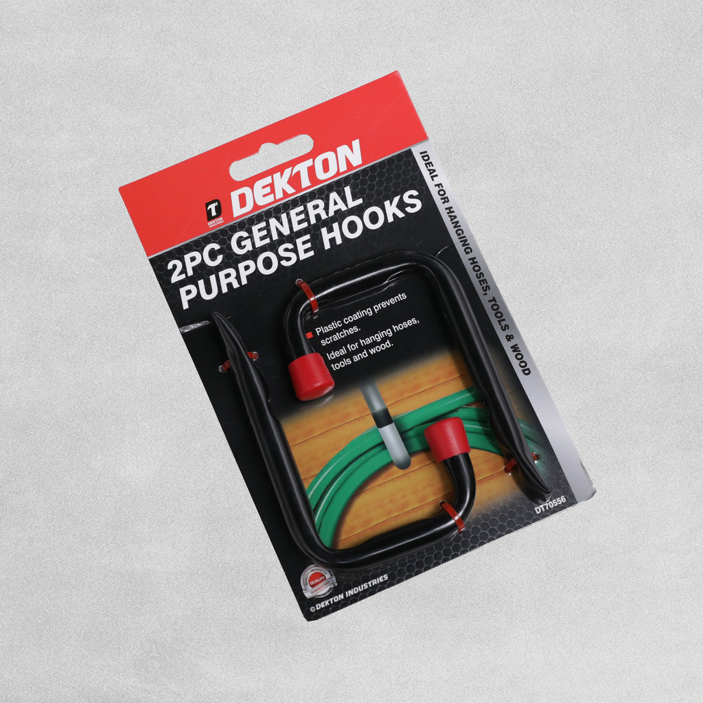 These Dekton Hooks are great for use in the shed, garage or home. They are useful for a wide variety of purposes including hanging tools, bikes, wood, furniture, ladders, water hoses and more. They're durable and they're plastic coated to avoid scratching your belongings.