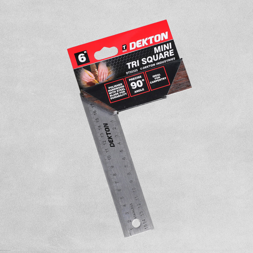 The Dekton Carpenters Tri Square is made from polished hardwood with a steel blade for durability. With its 90° angle, it is ideal for carpentry.