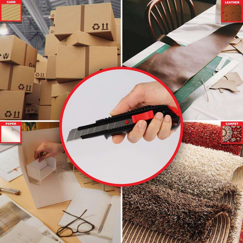 The Dekton Heavy Duty Snap-Off Knife is ideal for cutting thick or tough card, paper, leather or carpet.