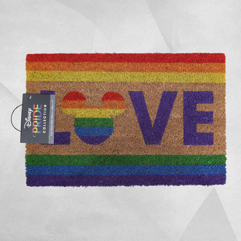 Showcase your Pride with this Disney Coir Door Mat! Designed to add a splash of colour to your entrance, this mat features a bold ‘Love’ slogan alongside a rainbow Mickey Mouse head. The coir material is accented with pride flag colours along the edges, making it a vibrant and welcoming addition to any home. Hard-wearing and durable, it's perfect for use both indoors and outdoors.