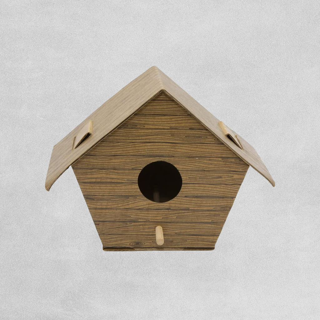 Made from wax-coated cardboard, this water resistant house is easy to put together and comes complete with a wooden dowel for the front perch. No tools necessary, other than your hands!