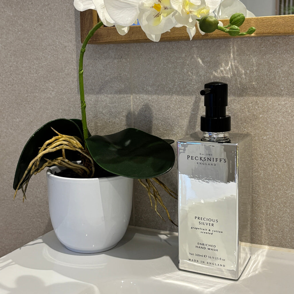 Indulge your senses with the luxurious hand washes from Pecksniff's. The enchanting blends create a sophisticated fragrance that transforms everyday hand washing into a delightful experience. The hydrating formula, comes in a generous 500ml pump bottle that makes them perfect for bathrooms and kitchens.