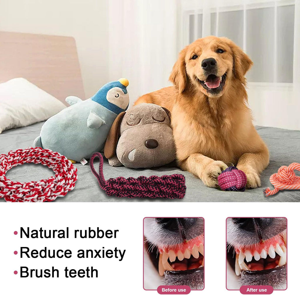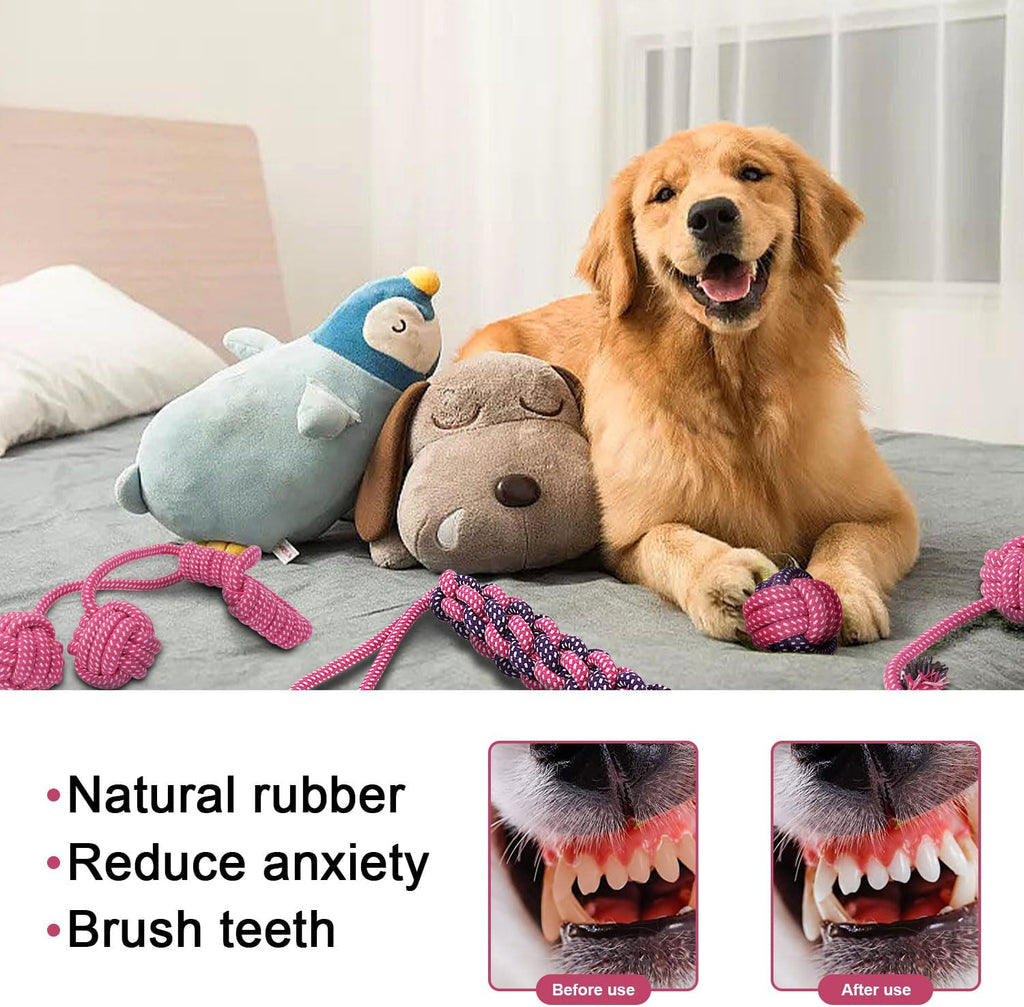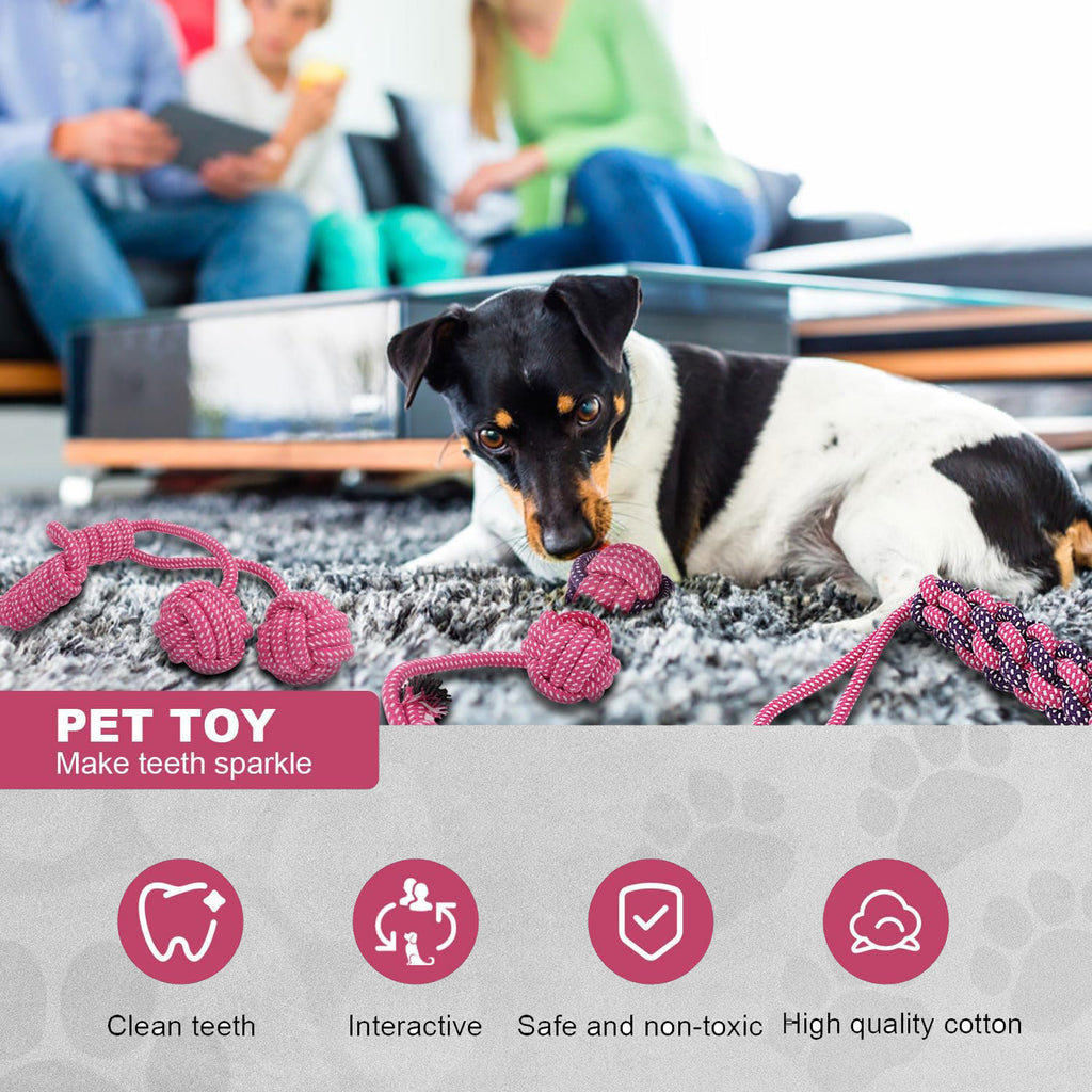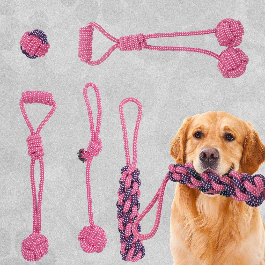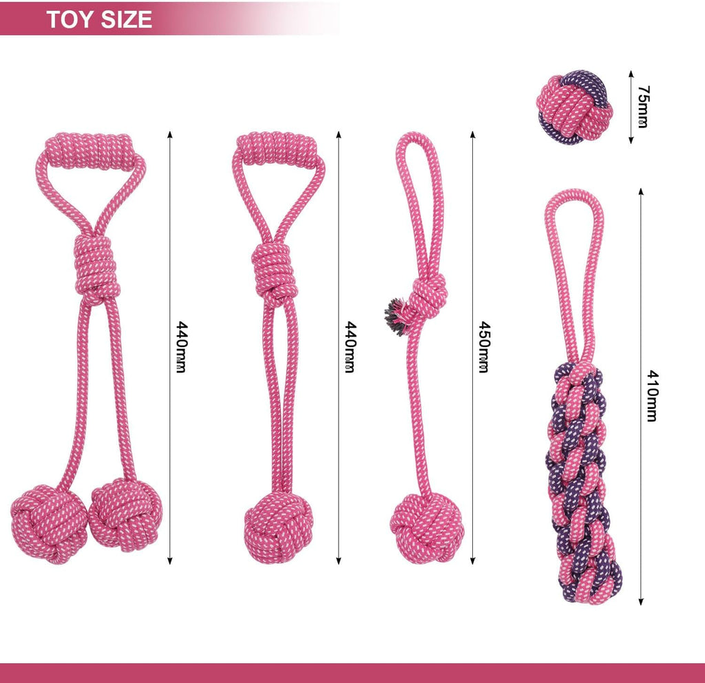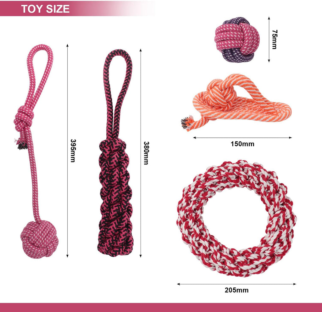These colourful rope toys are crafted from tightly woven cotton fabrics, ensuring long lasting use and resistance to fraying. Each set includes an assortment of shapes, such as ropes, knots and balls, providing mental stimulation and engaging play for dogs. These versatile toys encourage interactive playtime, allowing you to engage your dog in games such as fetch, tug-of-war and more!