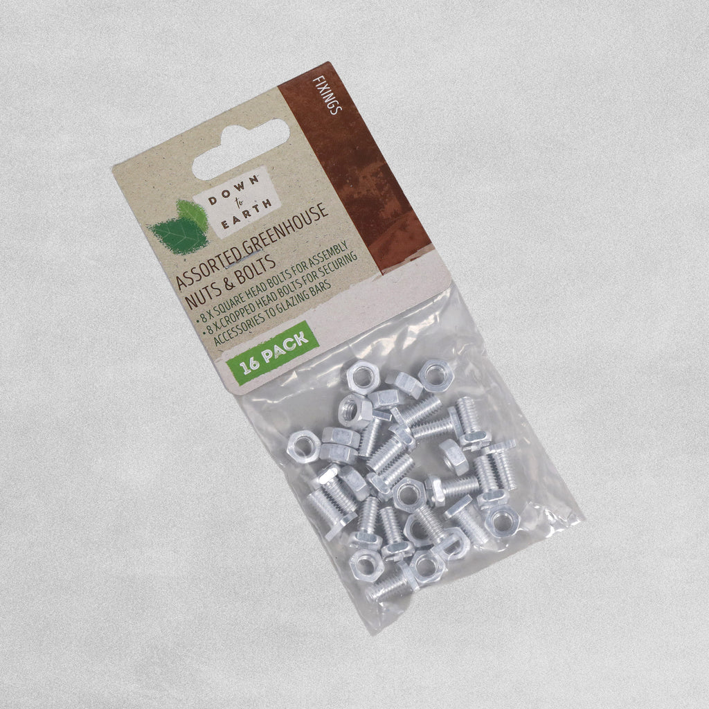 The Down To Earth Cropped Head Nuts and Bolts slide into channels of aluminium frames to create securing pointing. They are made from lightweight galvanised steel.
