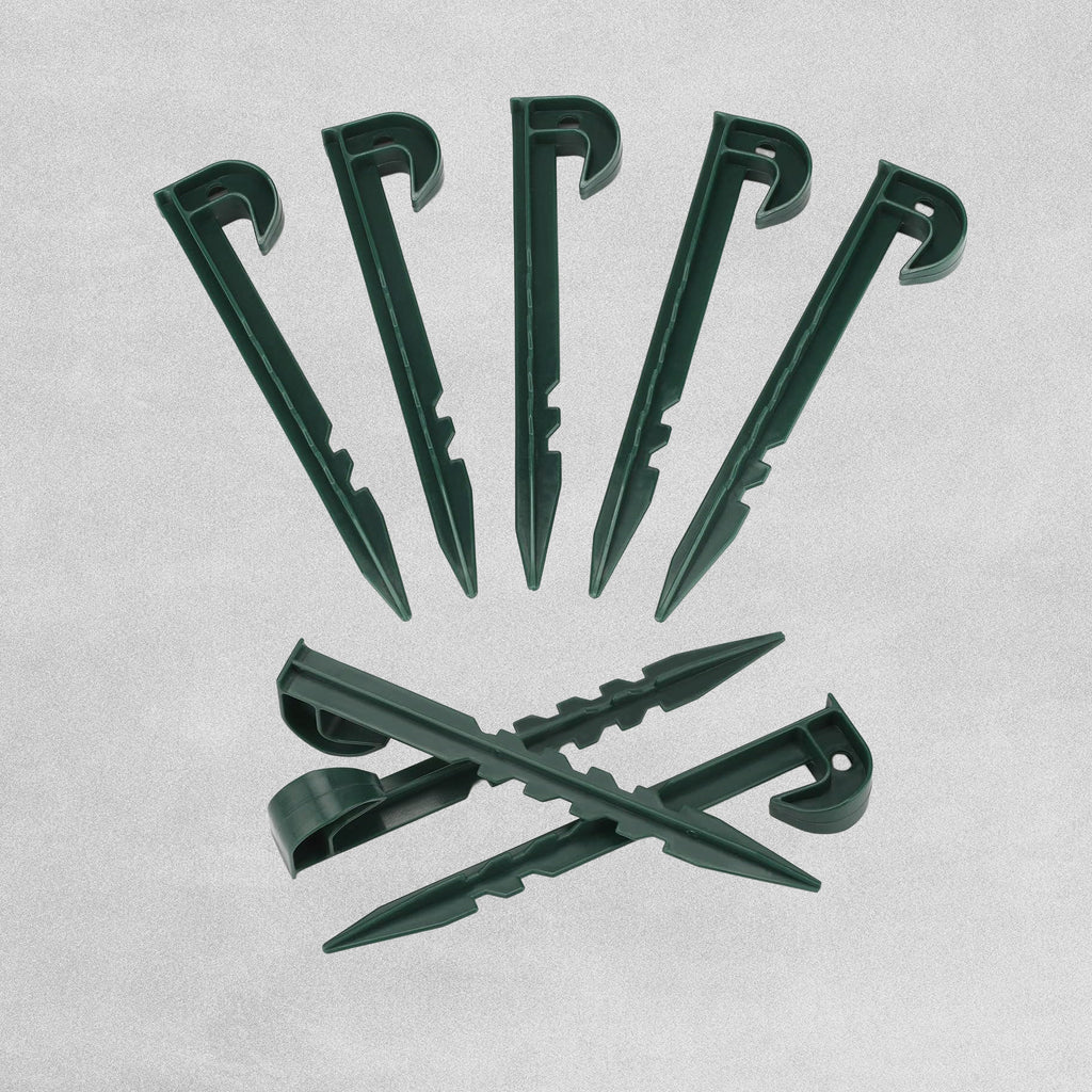 - The pack contains 10 green pegs, universally coloured to blend with any garden aesthetic.