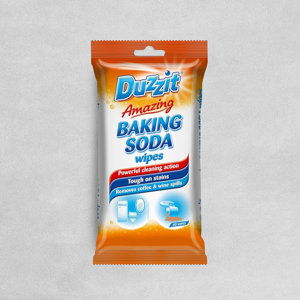 Duzzit Baking Soda Wipes. 40 wipes in a resealable pack.