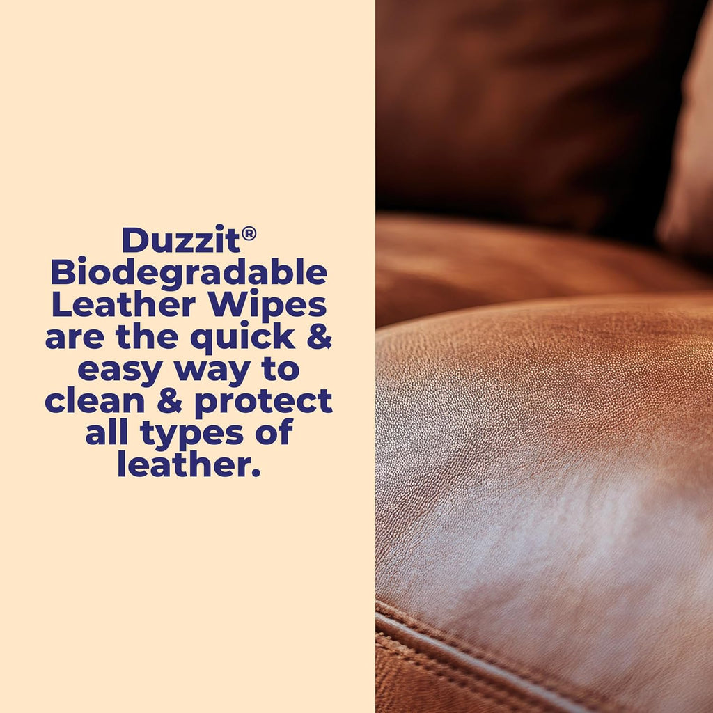 The Duzzit Leather Wipes are the quick and easy way to clean and protect all types of leather. These wipes are especially useful for leather sofas, bags or jackets. Simply remove a wipe from the packet and wipe over the area to be cleaned. These wipes are ready when you are, whether you're cleaning up a spill, freshening up the car interior or maintaining expensive shoes.