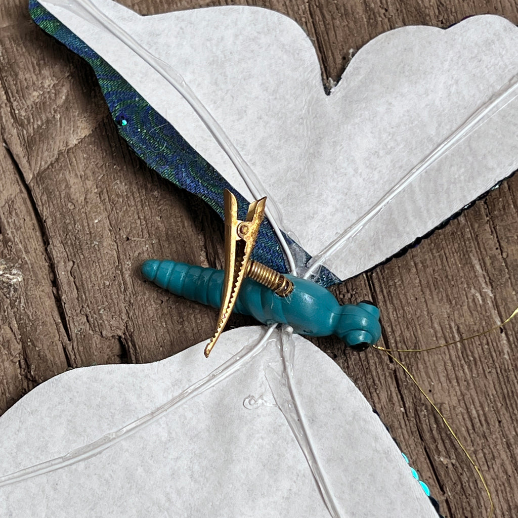 The wings are wired, making it easy to arrange and a clip affixed to the short stem on the back of the butterfly makes it easy to secure when crafting and decorating.
