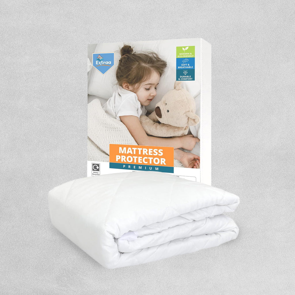 The Extraa Mattress Protector provides you with a heavenly sleeping experience. It protects you from dust mites, allergens and bed bugs, as well as being noise free to ensure that you have a silent nights sleep.
