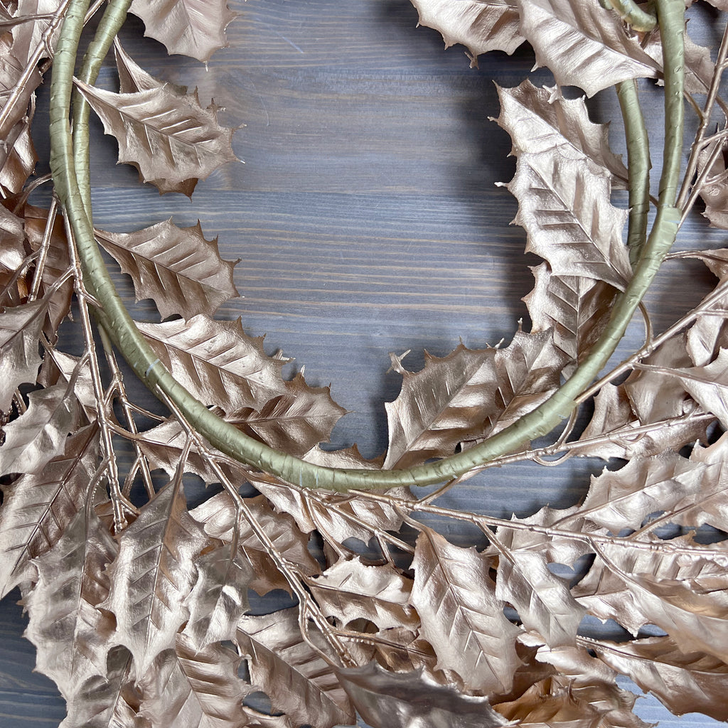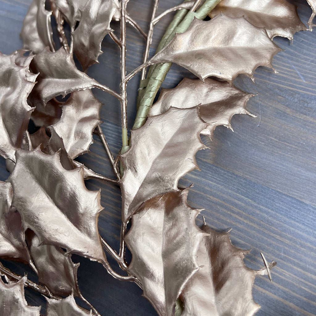 Inspired by grand, traditional Christmas decorating, this Gold Holly Garland is sure to add some sparkle and shimmer to your home. The long garland features beautifully crafted golden holly leaves . This garland can be wrapped around bannisters, draped over mantelpieces, or be used to jazz up shelves, helping to finish your decorating in style regardless of your festive theme.