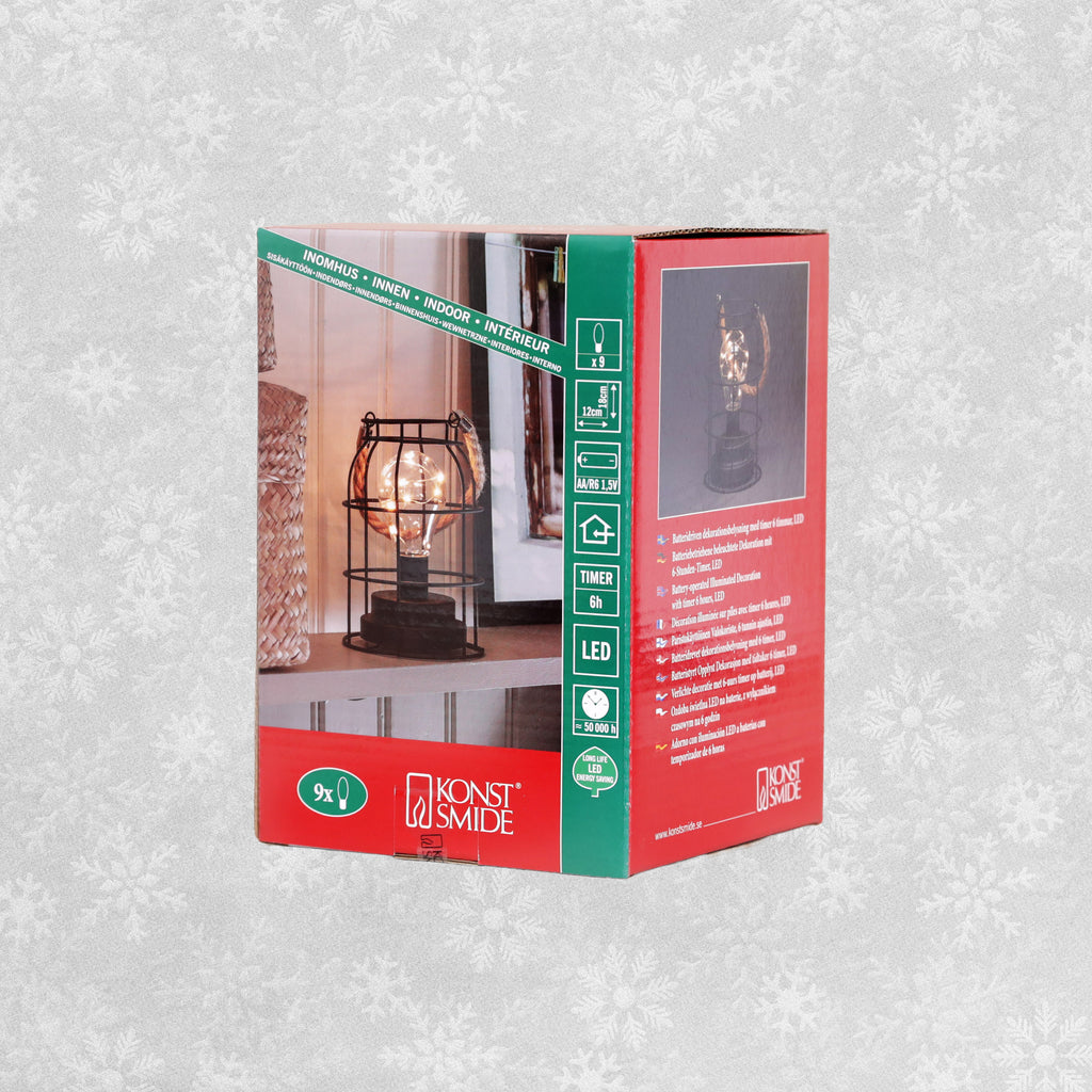 Konstsmide warm white LED lights in a round metal lantern with rope handle. A real showpiece for your Christmas decor this year.