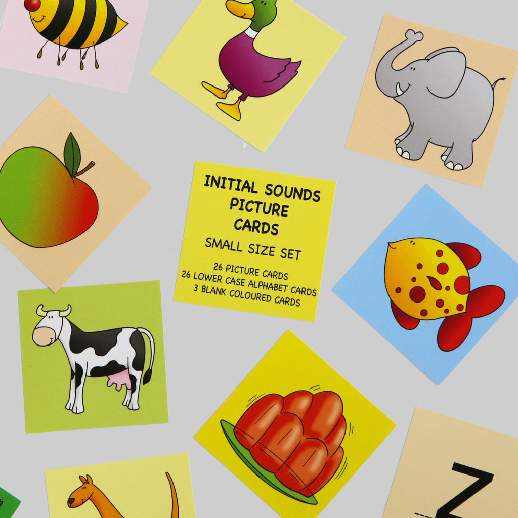 These Initial Sound Picture Cards will provide children with plenty of examples while they learn the alphabet. This pack contains 55 cards - 26 picture cards, 26 lower case alphabet cards, 3 blank coloured cards