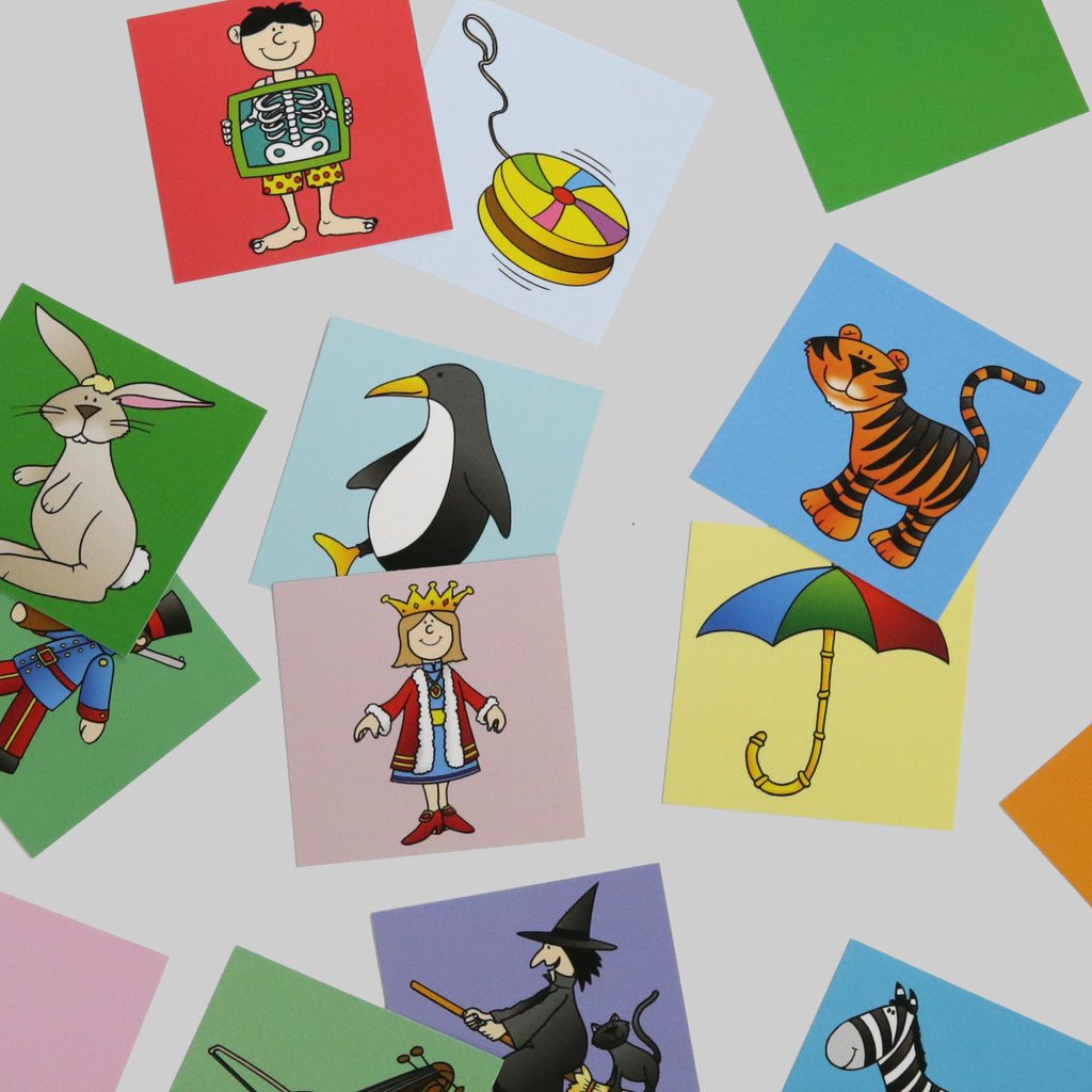 - Contains 55 cards - 26 picture cards, 26 lower case alphabet cards, 3 blank coloured cards