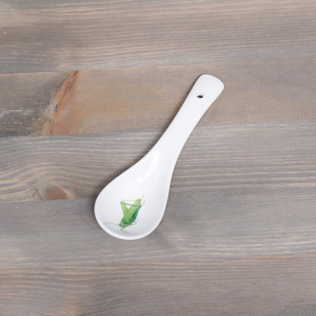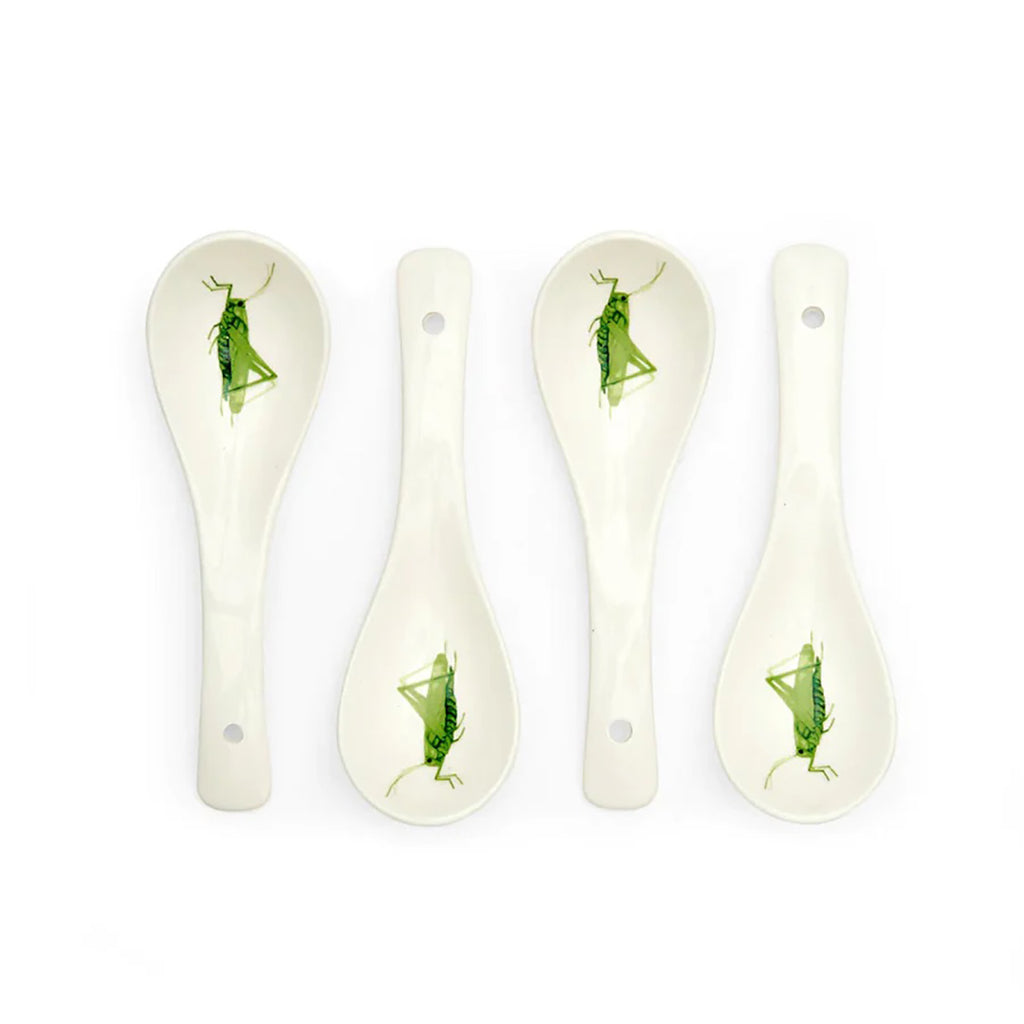Kikkerland, a set of convenient and beautiful spoons made of ceramic, with the image of a green grasshopper. Spoons will be a great addition to your tableware collection and table setting.