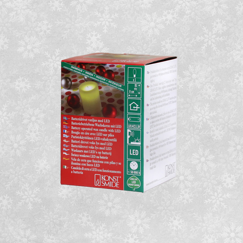 The Konstsmide lifelike battery operated wax candle has an LED flame in an ivory finish. This delightful item is made from real wax and is sure to be a perfect addition to your seasonal decorations this festive period, providing a warm & cosy illumination for your home this Christmas and can also be used all year round.