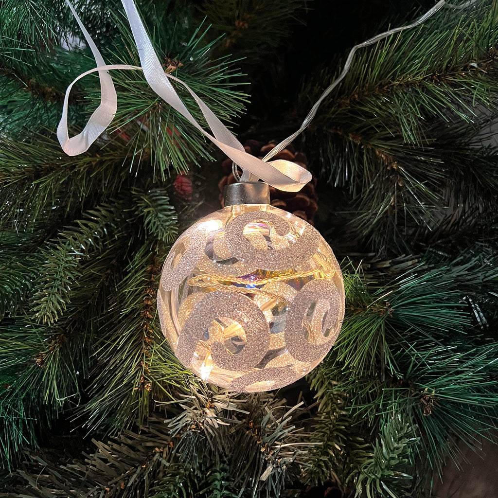 - Integrated 6 Led Light Bulbs in the bauble emits a gentle warm glow. .