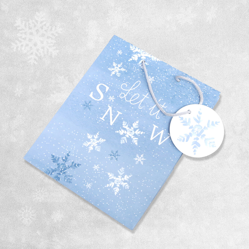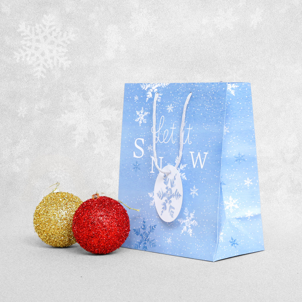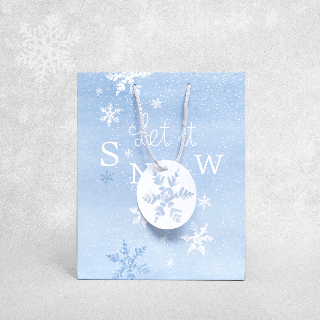 Pop your loved one's presents inside this lovely festive bag. It has a 'Let It Snow' design, including a snowflake and snowy design with a matching gift tag attached to the handle.