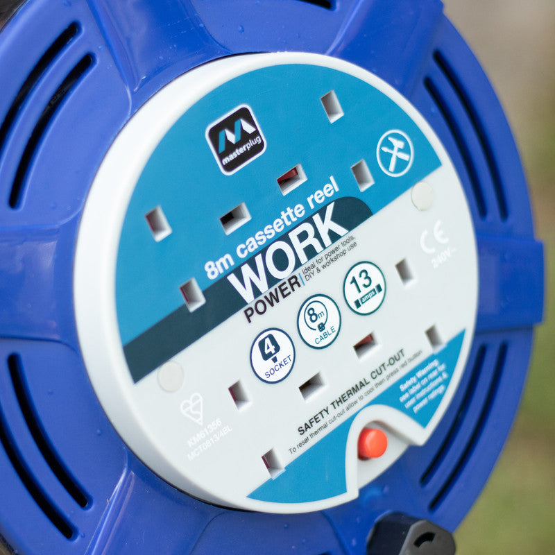 5m Cassette Reel from Masterplug is a compact, practical power extension solution for use around the home, garden, and light commercial settings. With 5 metres of cable and four sockets, this cassette reel offers a convenient way to power multiple tools and appliances safely and efficiently. Designed for durability and ease of use, the SCTO510/4BL provides a reliable power source for a range of tasks, from DIY projects to outdoor activities.