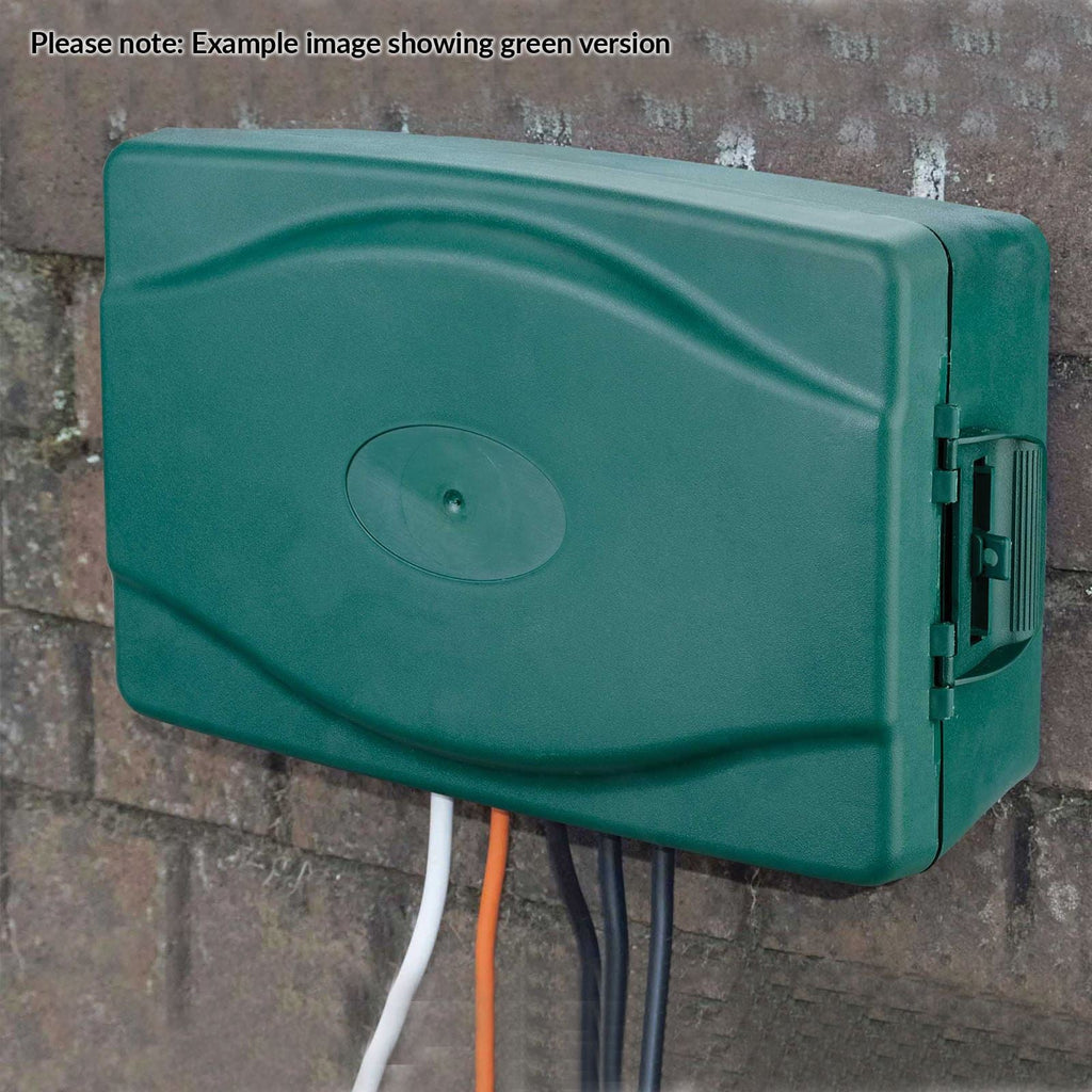- With a hinged front cover and secure side catch: The outdoor weatherproof box also has wall fixing capabilities as well as a hook and fastener strip to hold the extension lead in place