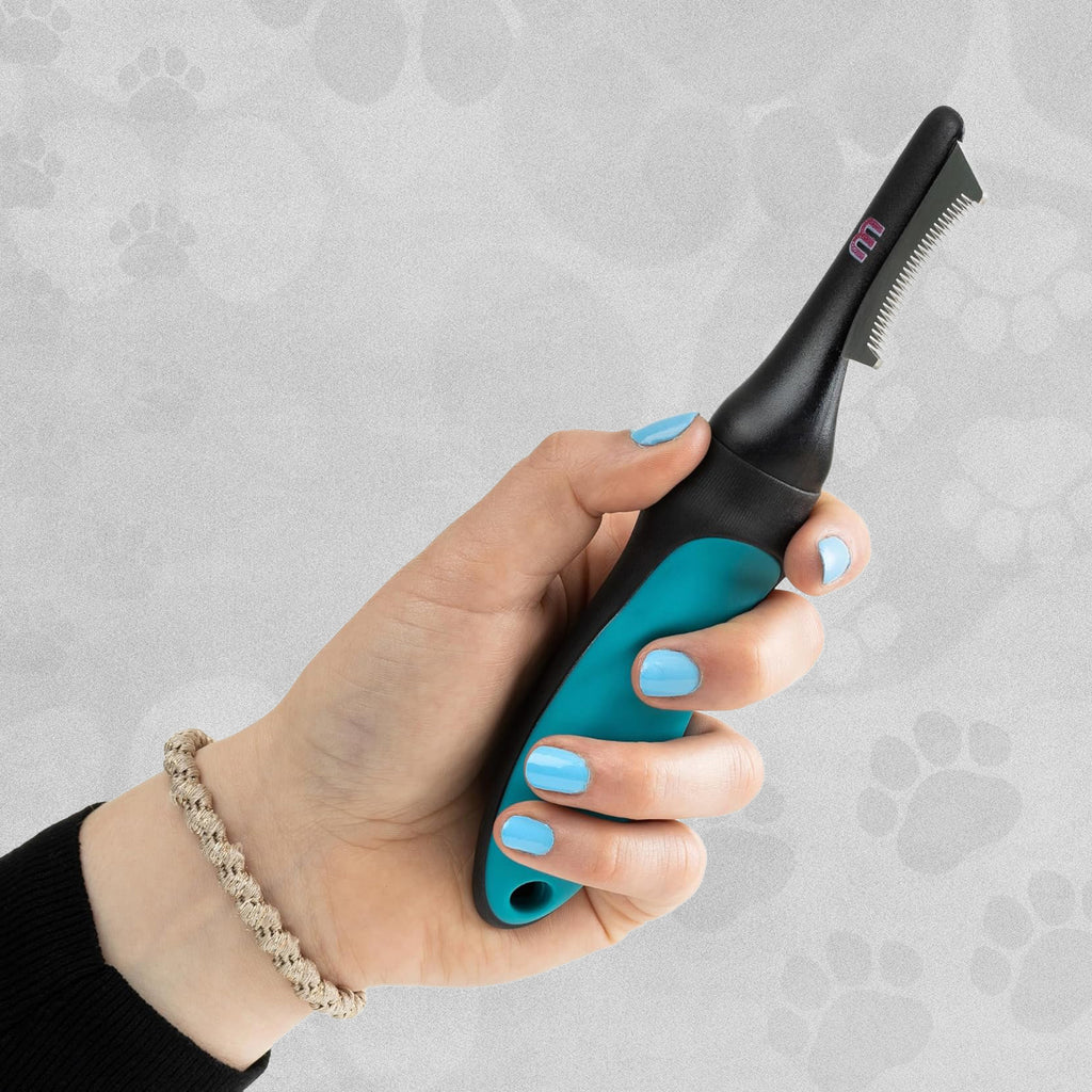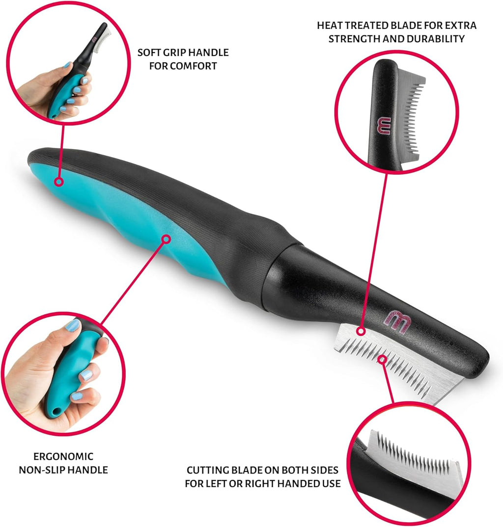 Keep your furry friend's coat neat and shiny with the Mikki Coarse Stripping Knife. This stripping knife has been especially designed to provide a comfortable grip for left and right handers during grooming. It is ideal for removing top coats and for thinning fur, leaving your pet with a glossy, healthy coat.
