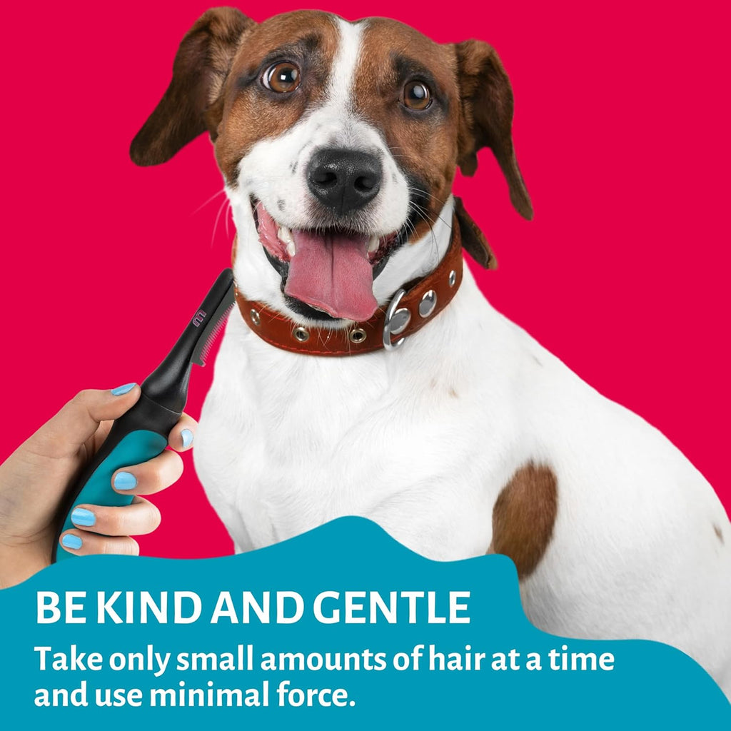 This innovative stripping knife makes grooming a breeze. Its ultra-sharp, fine-toothed blades penetrate deep into the coat to extract unwanted hair, leaving behind a soft, fluffy, and healthy-looking finish.