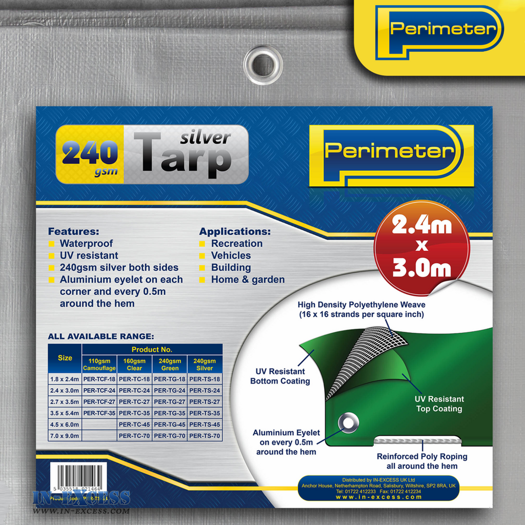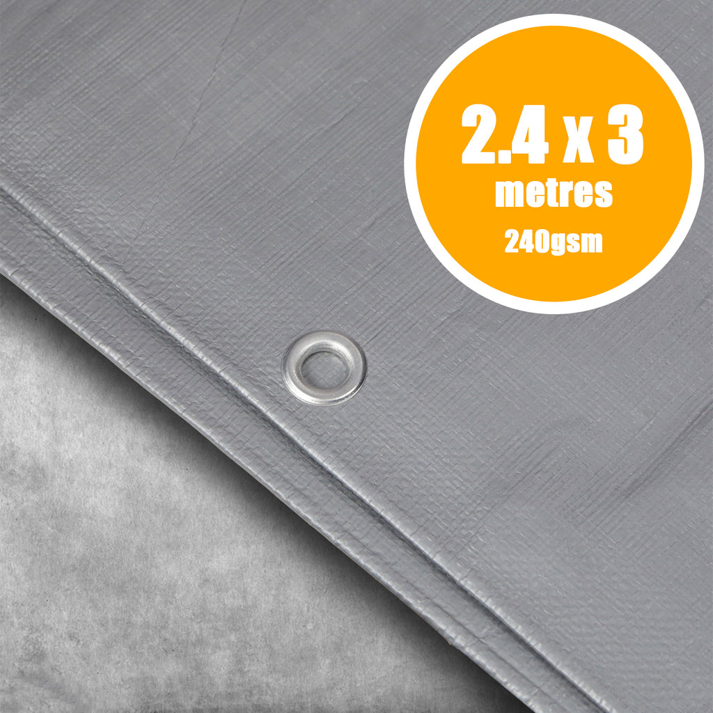 Perimeter Heavy Duty Tarpaulin Silver - 2.4 x 3.0 Metres