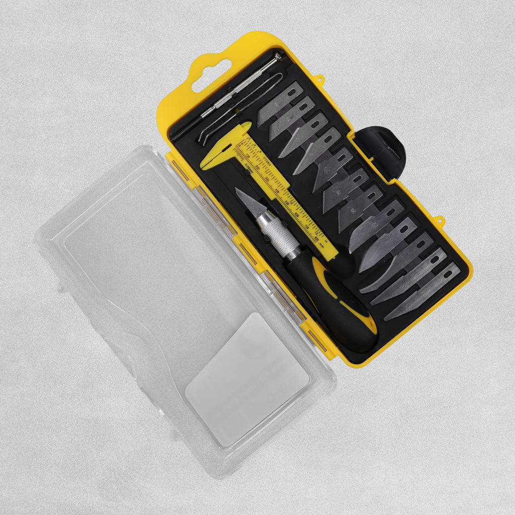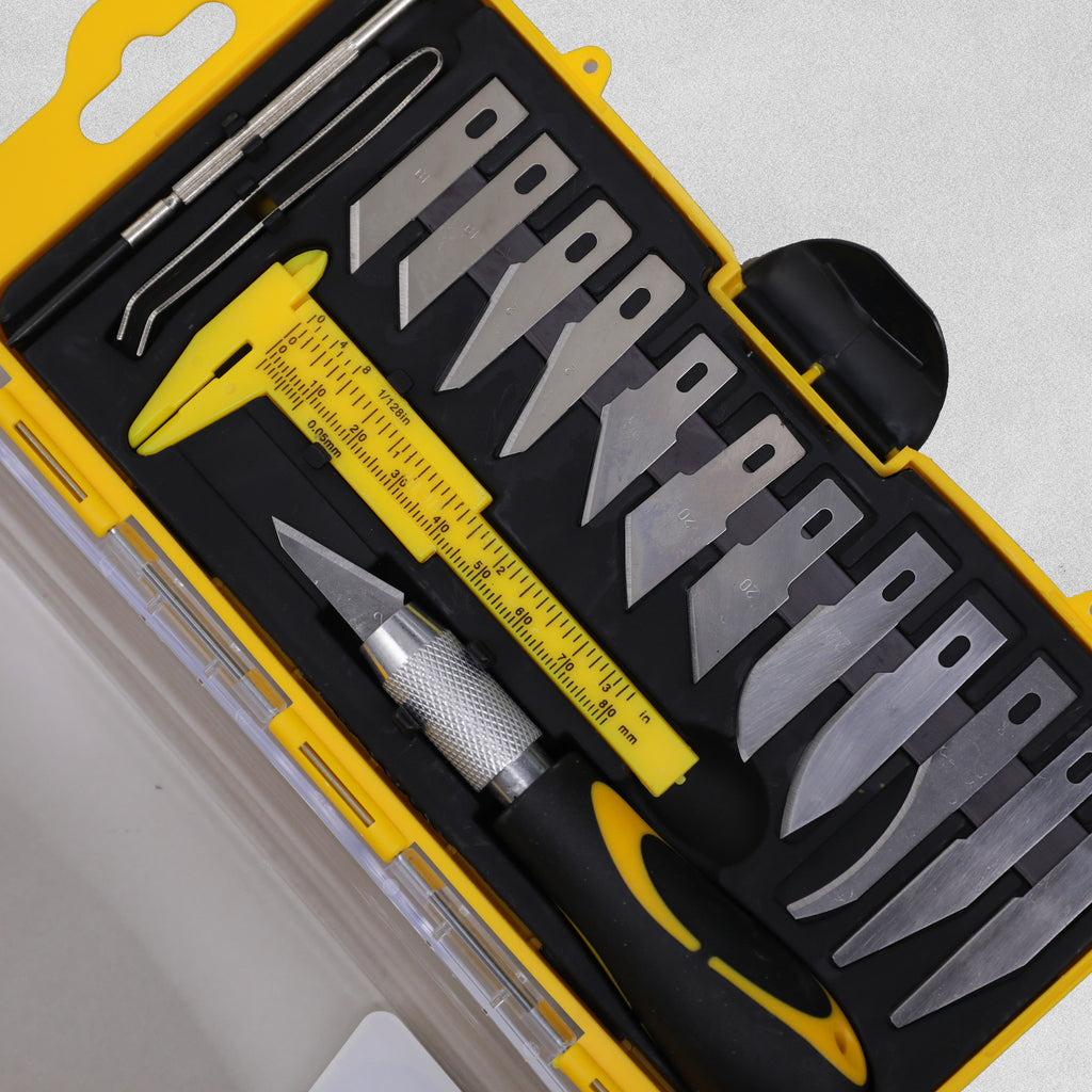 This excellent set is ideal for hobby, craft as well as professional tasks. The knives can perform fine angle cuts & precise trimming, cutting, carving, sawing, gouging & shaping. All packed in handy storage case.