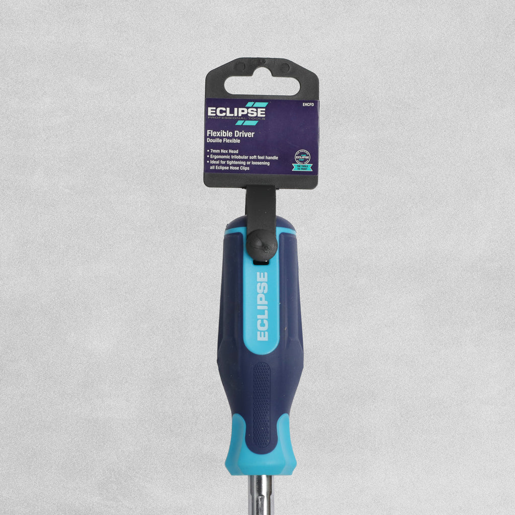 The Spear & Jackson Eclipse Flexible Driver is designed to tighten and loosen bolts on stainless steel hose clips. It has a ergonomic soft feel handle, and a 180 degrees flexible chrome-plated carbon steel shaft that provides up to 90 degrees access for working in tight and hard to reach spaces.