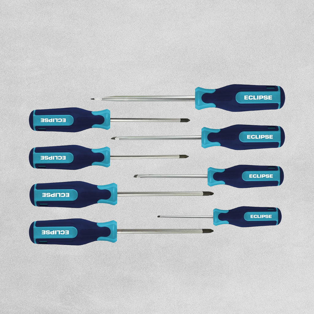 The Spear & Jackson Eclipse Screwdriver Set contains all the essential screwdrivers made from chrome vanadium for strength and durability. The ergonomic handles are made for a comfortable grip and greater torque when turning the screw.