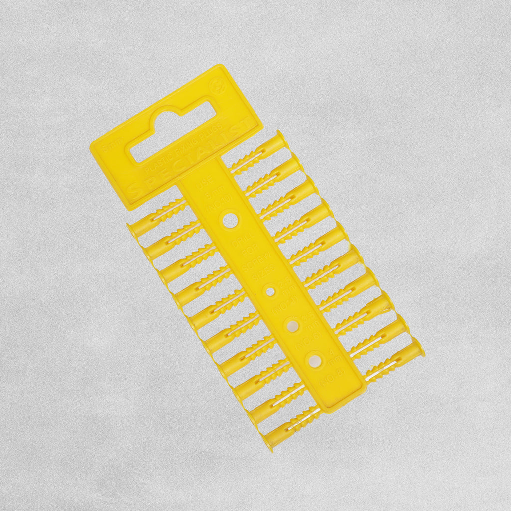 The Yellow Wall Plugs measuring 5mm are designed for fixing into brick, concrete, and hollow or solid walls.