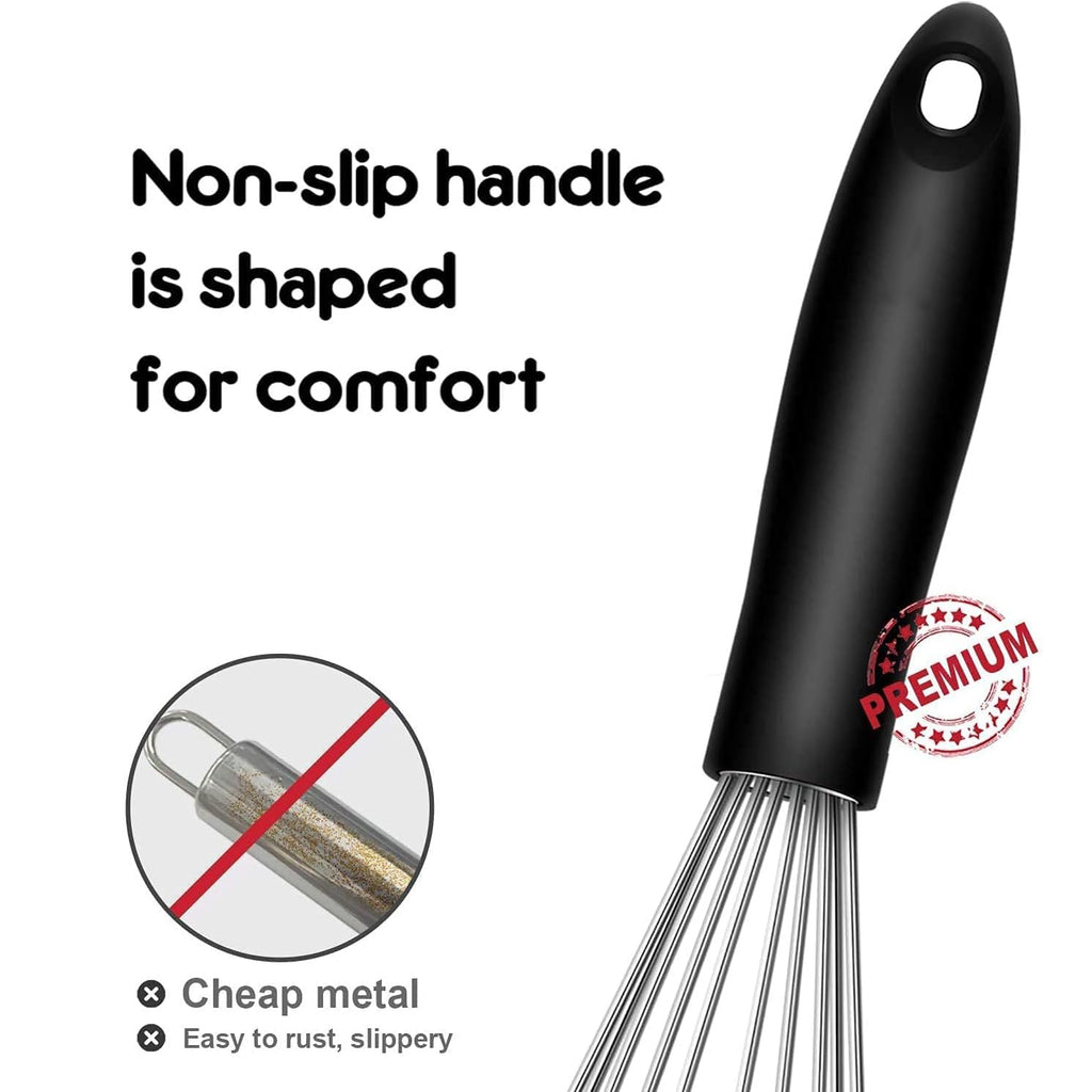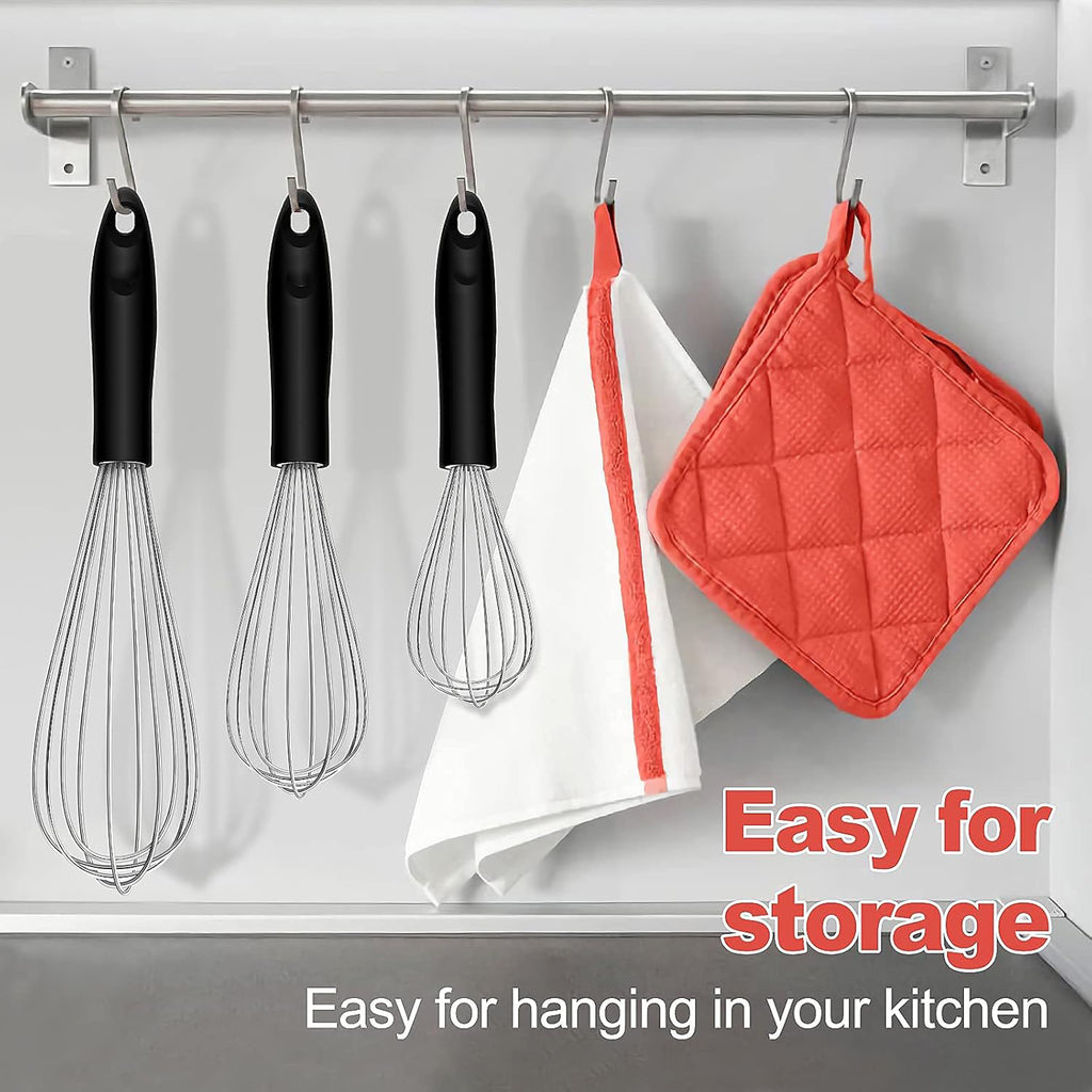 Create delicious meals and treats with confidence, With ergonomic handles and smooth gip, you'll have an easy whisking experience with greater control, meaning you have better results in your cooking and baking. With 3 sizes included, these whisks have everything you need to cater to each and every cooking and baking need.