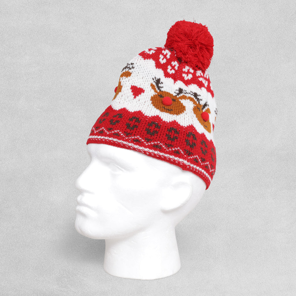 Keep your ears cosy during this frosty season with the Luxury Rudy Beanie from Three Kings. With a simple but statement red and white pattern with cute cartoon reindeers, this hat is sure to bring smiles to all that see it. For those that wish to spread Christmas cheer far and near, this Luxury Rudy Beanie is sure to be a hit.