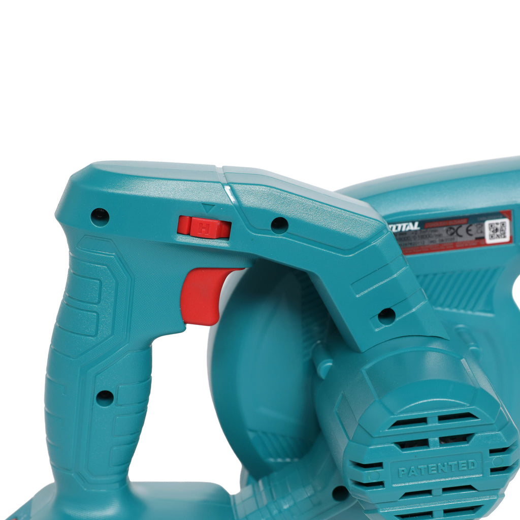 The Total Cordless Blower that combines portability and efficiency. Featuring dual speed settings and a maximum air volume of 2.7m3, this blower delivers strong airflow for clearing dust, leaves and debris. Its ergonomic design and variable speed trigger ensures precise control. The product is packaged in a colour box for easy organization. Battery and charger sold separately.
