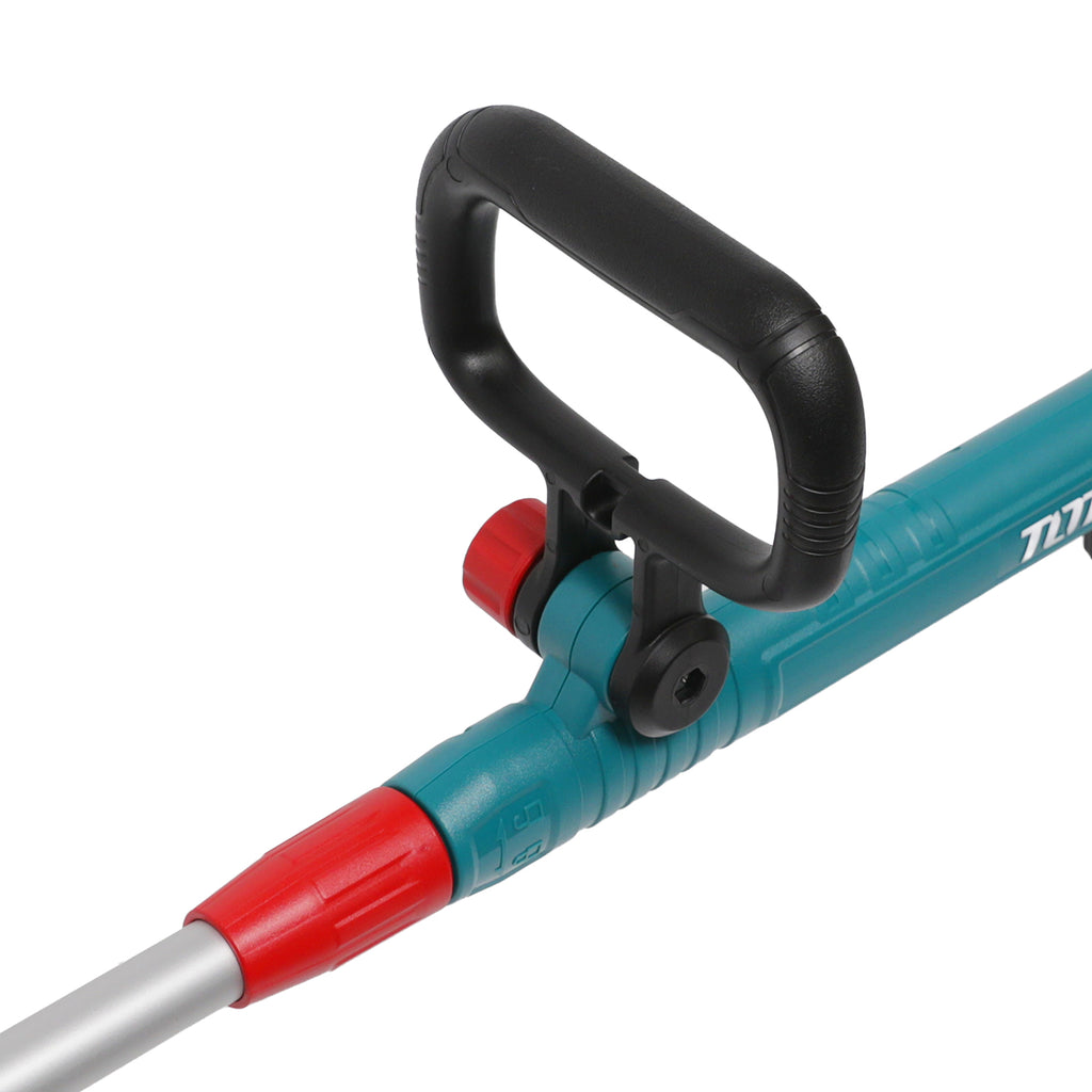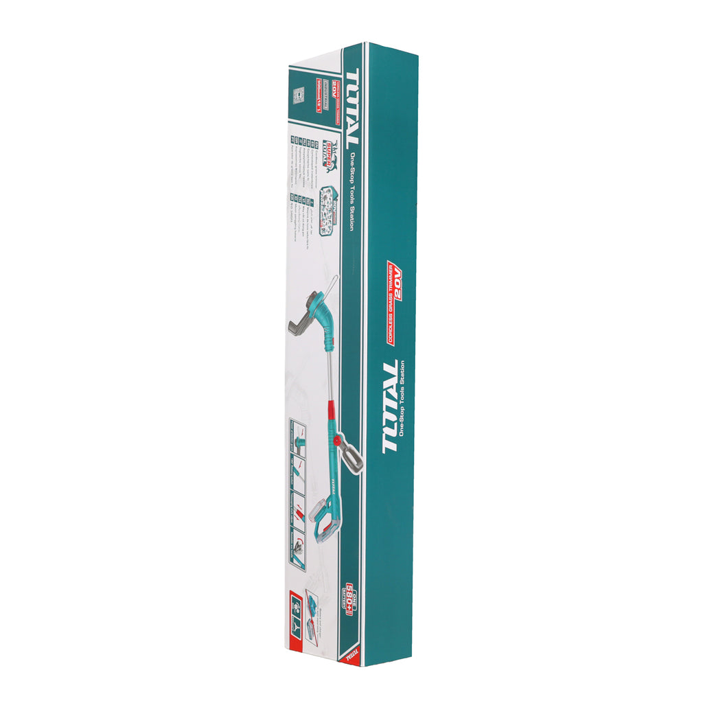 Expertly trim your lawn with the Total Li-Ion 20V Cordless Grass Trimmer. Featuring a telescopic shaft, flower protection guard, and rotatable handle, this trimmer offers 180 cutting swath for precise and efficient lawn maintenance. With a 20V voltage and 8200rpm no-load speed, you can expect powerful and fast trimming results. Plus, at only 1.85 kg, this trimmer is lightweight and easy to handle. (Battery not included)