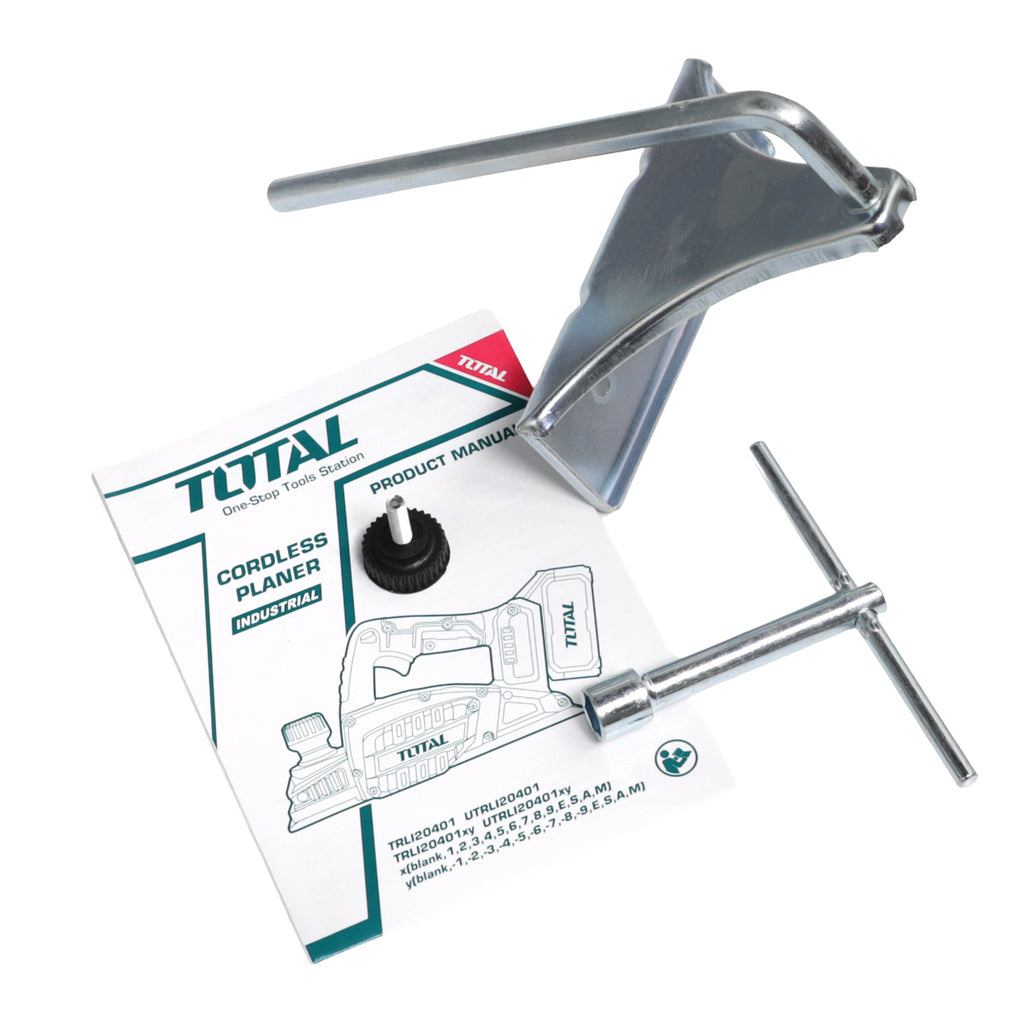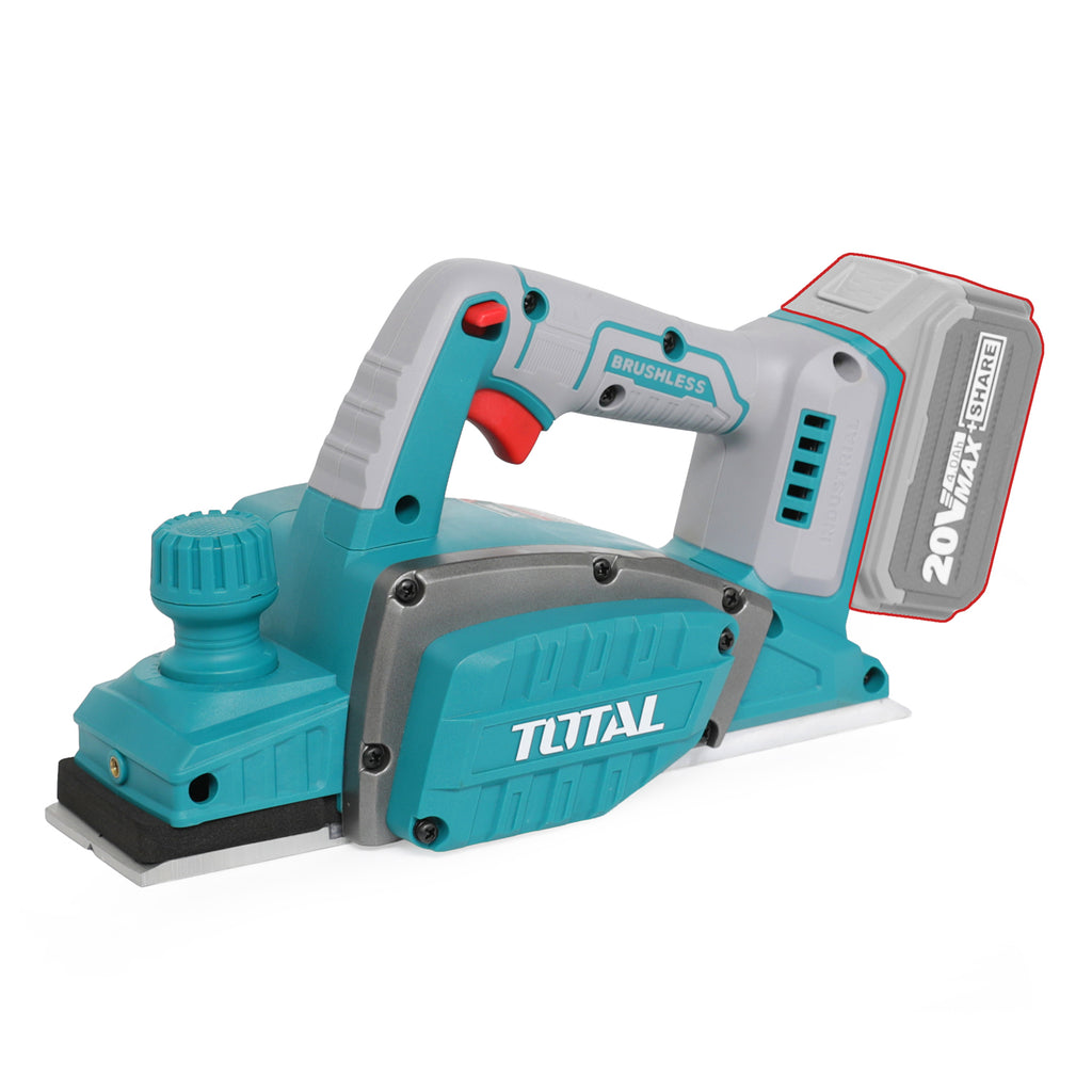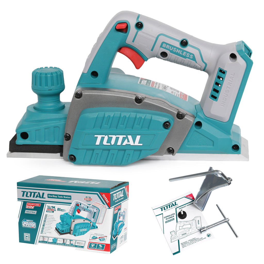Experience precise woodworking with the Total Li-Ion 20V Cordless Planer, featuring a powerful brushless motor that delivers a no-load speed of 14,000 rpm. With an adjustable planing depth of up to 2mm and a 82mm wide cut, this tool ensures smooth, accurate results. Includes essential accessories like a socket wrench, parallel guide, and guide screw for versatility. Please note, battery and charger are sold separately, allowing you to customize your cordless setup to meet your needs.
