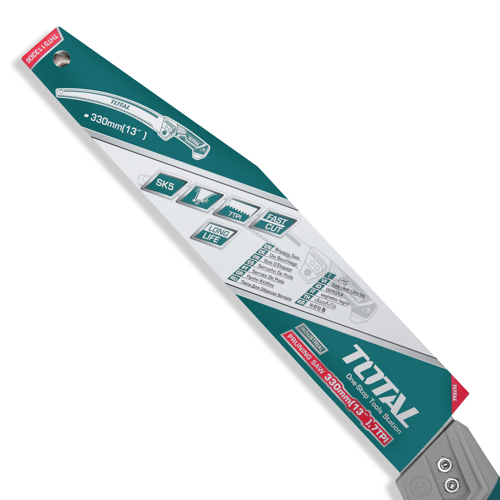 The high-quality 13" (330mm) pruning saw is designed for fast and efficient cutting. Made from SK5 steel, it features 7TPI heat-treated teeth for superior durability. The triple-ground precision teeth ensure that you get smooth and sharp cuts with every stroke. It is ideal for gardening, landscaping and outdoor pruning tasks.