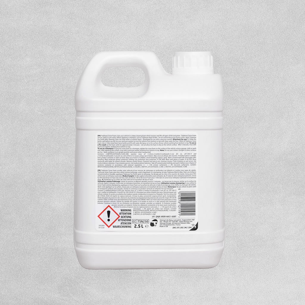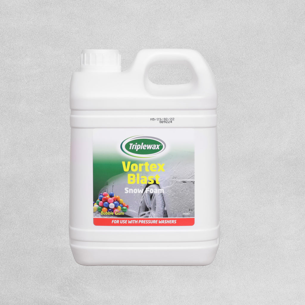 Triplewax Vortex Blast Snow Foam coats your vehicle in a deep cleaning foam that loosens and lifts all types of dirt and grime without stripping wax or sealant layers. Developed for use with a pressure washer and snow foam lance. Can be used as a pre-wash before applying a shampoo such as Triplewax Wash & Wax. For an outstanding, long-lasting shine apply Triplewax Carnauba Wax after cleaning.
