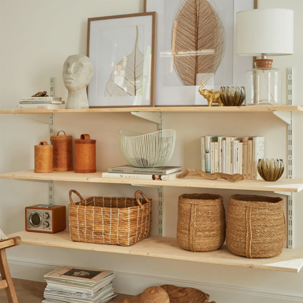 Standard duty straight shelf bracket, load spread over 2 slots on wall upright.