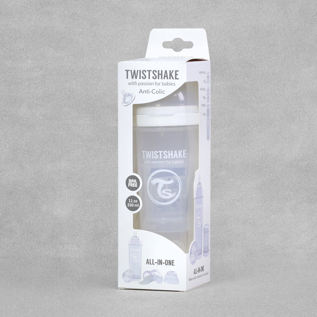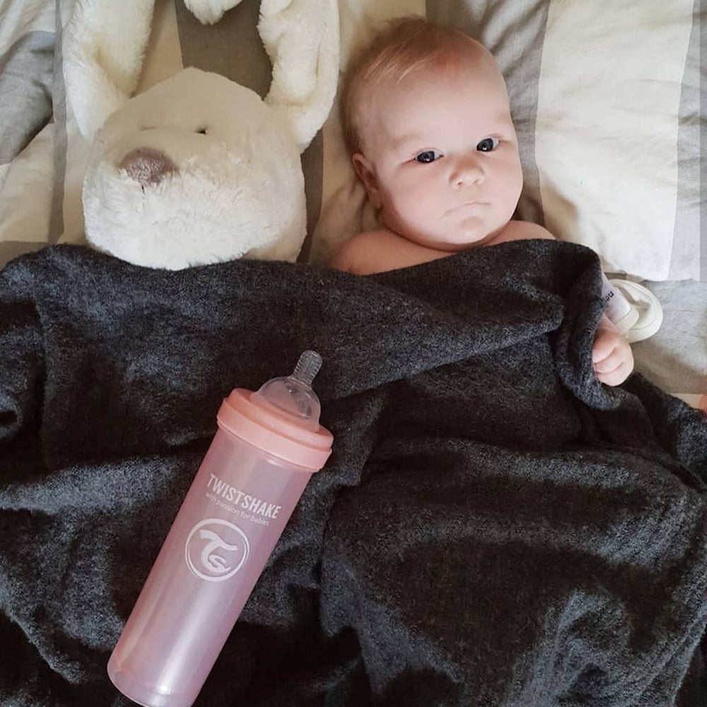 Twistshakes anti-colic baby bottle is the perfect solution for your little one's delicate tummy! Thanks to our revolutionary TwistFlow technology, you get no more air bubbles causing pain and discomfort. The air valve in the teat works in a way that releases unnecessary air instead of getting into your baby's sensitive stomach. This gives your baby an even drinking flow and reduces the risk of colic.